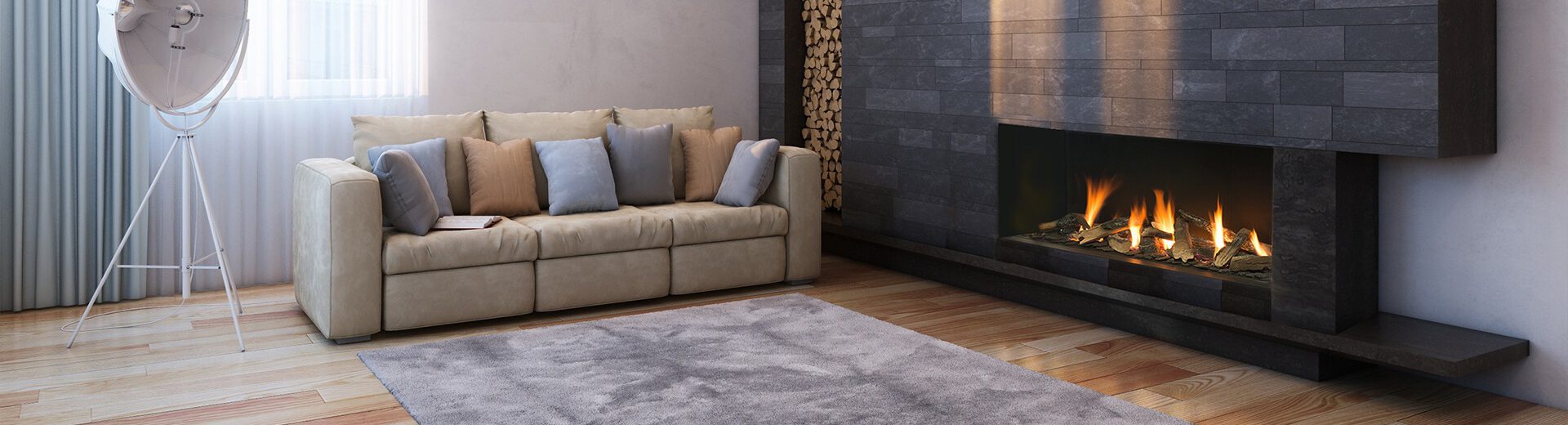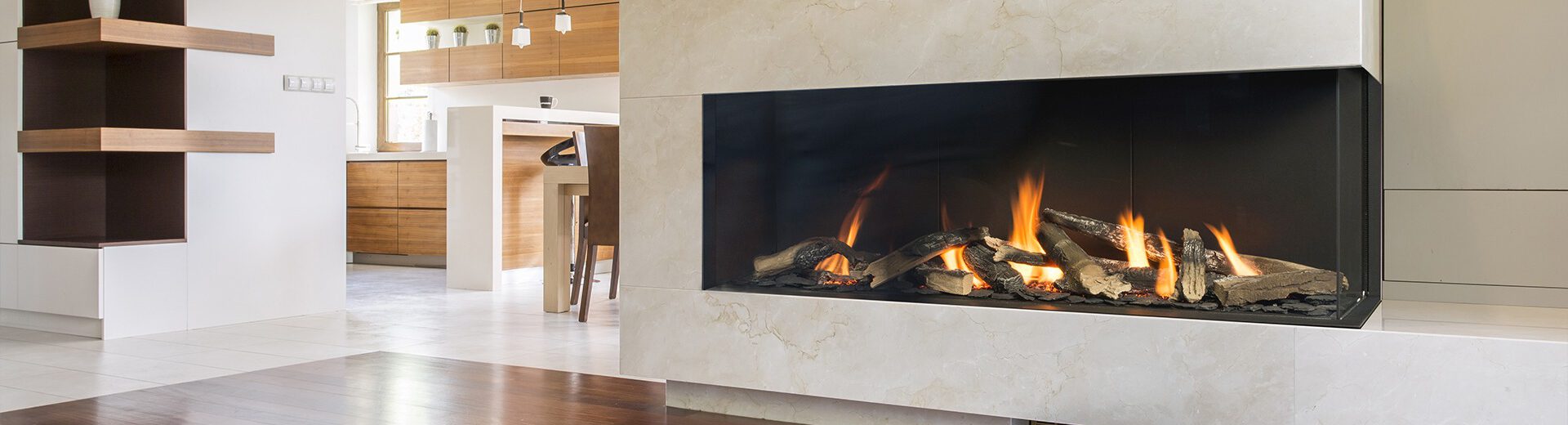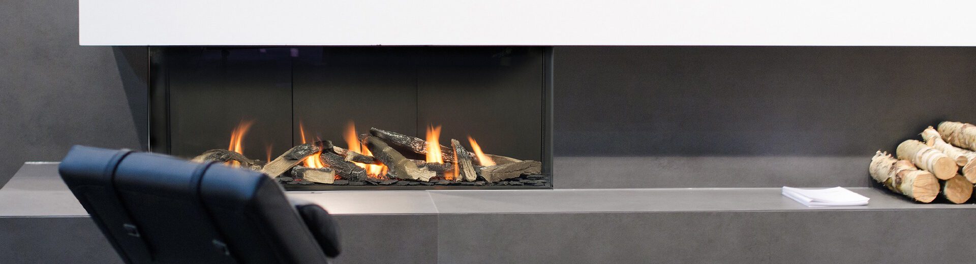 Valentino is a long gas fireplace with a three-section linear burner. It comes in two sizes, 1000 mm and 1300 mm, and is connected to a balanced flue. Shipped standard with antireflective glass panels and decorative logs, chips and black vermiculite. Valentino direct vent fireplace provides convenient control with a remote, smartphone and Smart Home Automation.