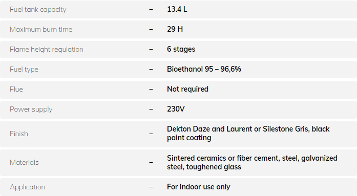 Stone Fireplace is an automatic BEV fireplace perfect for any indoor space – small or big thanks to its simple design. It can fit effortlessly with any interior style, especially modern, industrial or Scandinavian. The burner of Stone Fireplace is enclosed behind hot-tempered glass, but the heat is distributed through the hood of the fireplace, which allows to increase the temperature in the room. Quick and easy to use thanks to the Plug&Play solution.