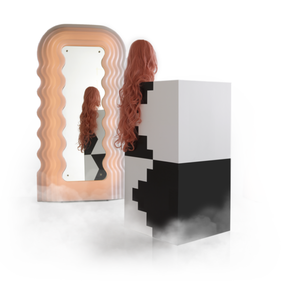 Ultrafragola mirror/lamp, with its sinuous profile that suggests long wavy hair, belongs to the Mobili Grigi series of complete bedroom and living room furnishings designed by Ettore Sottsass for Poltronova and presented at the third edition of Eurodomus in 1970. With the exception of Ultrafragola, the models never got beyond the prototype phase.