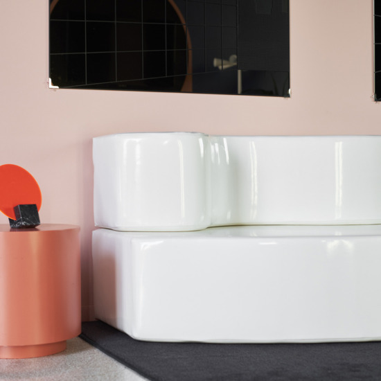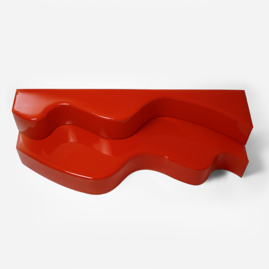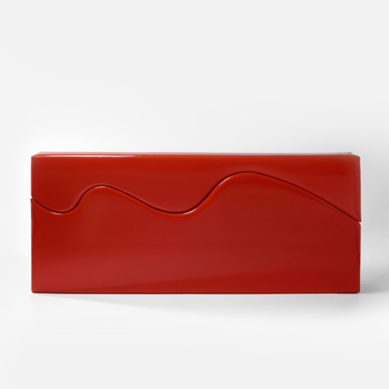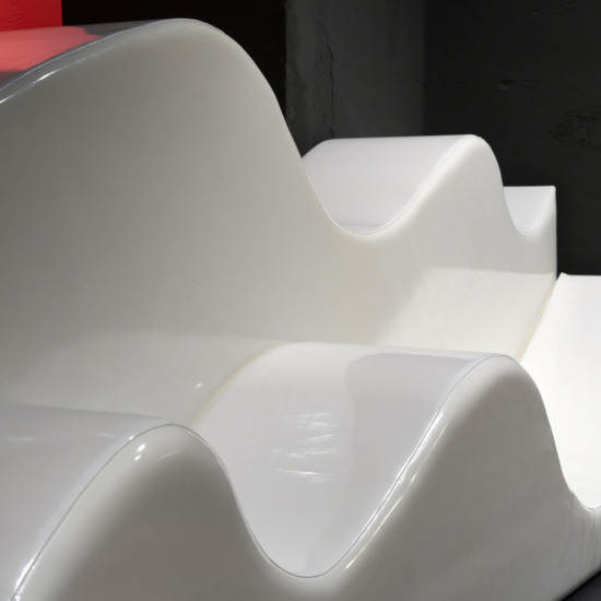 Designed in 1967 by the Florentine Radical group Archizoom, this was the first sofa without a conventional frame. It is composed of two waves made from a polyurethane block cut into two parts with an S—shaped incision, which can be interlocked and stacked to produce different configurations. The lightness and modular design permit a range of various uses: Superonda can be a sofa, a bed or a chaise longue. Like many of the pieces designed by the Archizoom group, it challenges bourgeois conventions, stimulating the creativity and fantasy of the user. The shiny leatherette cover in the basic colors of white, black and red accentuates the pop image.