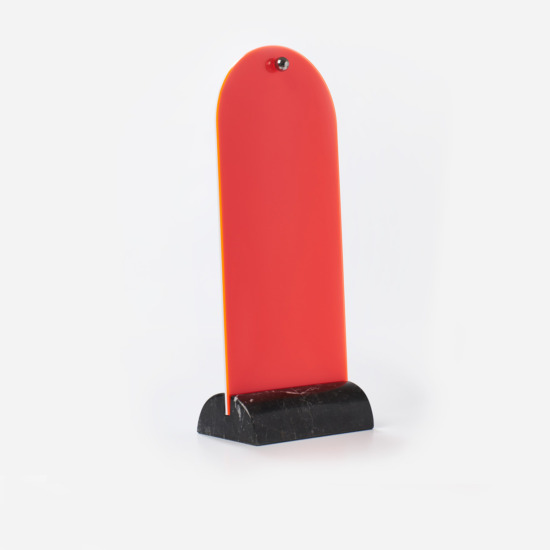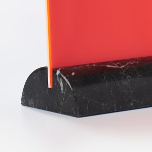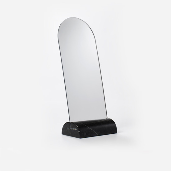 Spera is part of a series of small mirrors and a photo holder by Superstudio. The series began with the idea of using scraps from the processing of marble. An operation of bricolage, rather than creation, as the Florence—based group stated at the time. Careful milling of the irregular marble piece makes it become the precious support for a mirror and for two sheets of methacrylate to use as a photo frame. Ofelia, Spera and Vanitas, ahead of their time, represent a project of transformation capable of granting a new, refined aesthetic to industrial scrap.