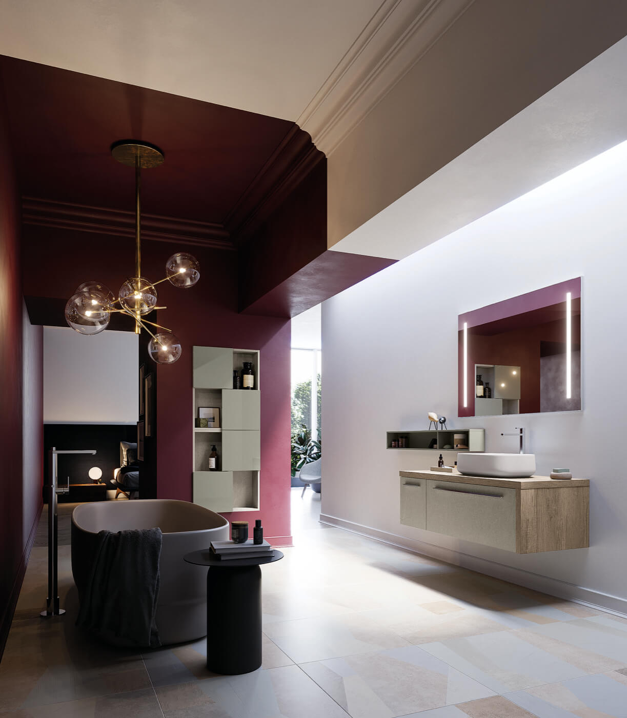 A composition devoted to functionality, but which offers ideas of absolute importance from an architectural point of view, where even the colour of the environment contributes to a surprising scenography.