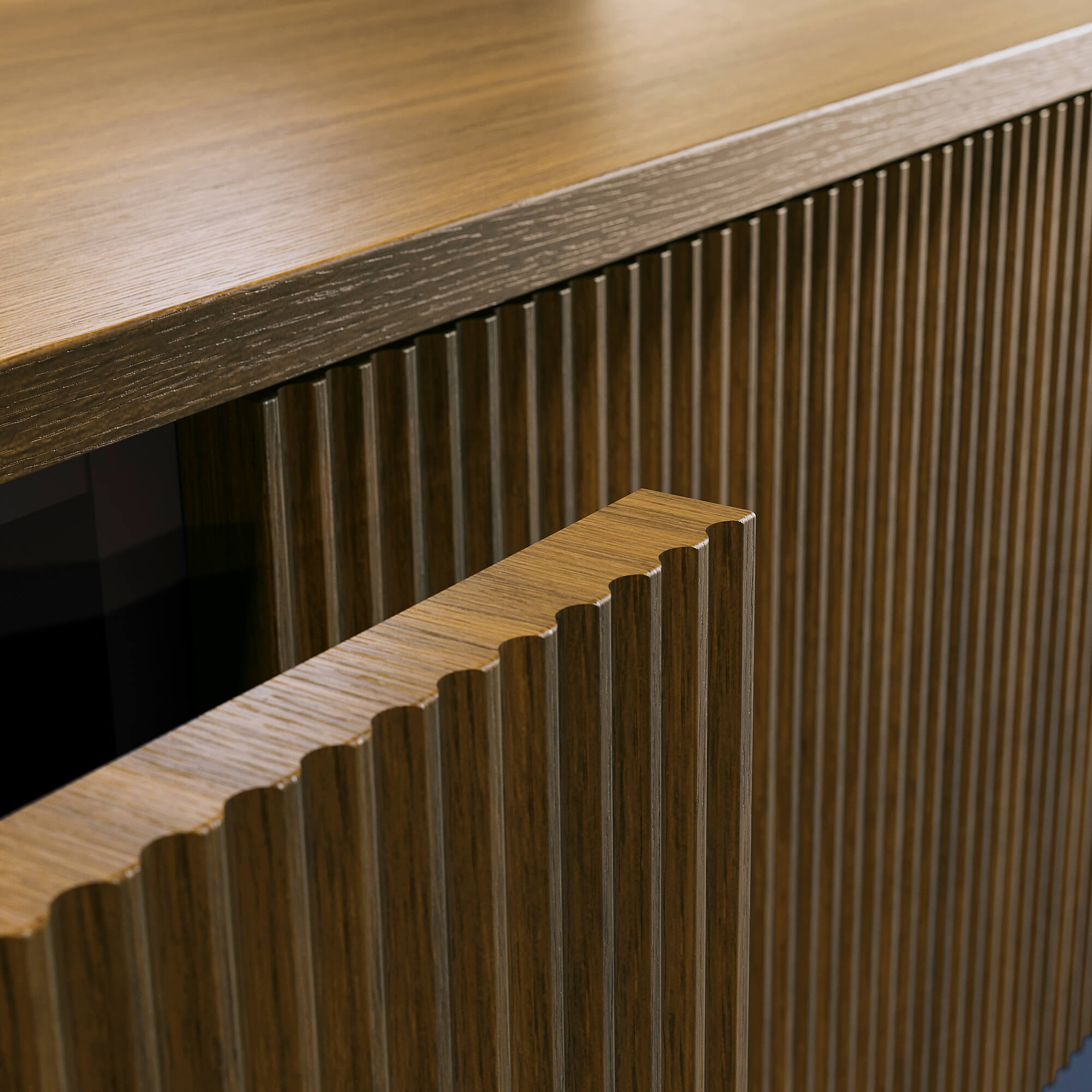 Extremely clean volumes, for a piece of furniture that speaks for itself, expressing all its bursting elegance. A pushed perspective, to highlight the shapes of the washbasin resting on the polymeric top. It seems a work of art this game of rigorous and geometric volumes. In these close-up details, the exclusive “cannettate” workmanship of VERTIGO is highlighted.