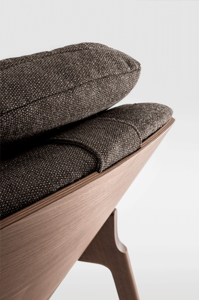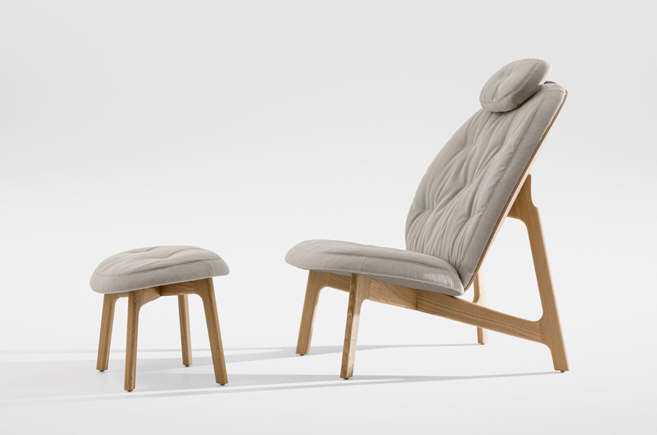 This expressive gesture makes the lounger appear sculptural and is at the same time an invitation to make yourself comfortable – put your feet up on ZENSO POUF. The striking cross-wood frame supports and carries the cantilevered back shell. The adjustable head cushion can be individually adjusted to the respective size. The lounger is characterised by a high level of seating comfort.
