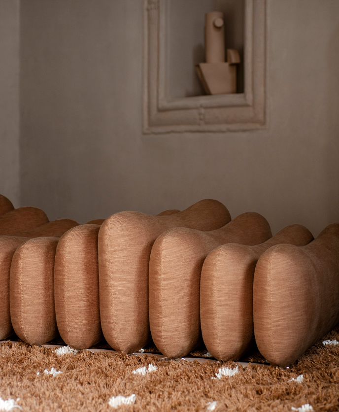 Modules with unusual shapes give life to original seating configurations where aggregation and variability take center stage. Additional System is a project by Joe Colombo from 1967, reimagined today by Tacchini while respecting its original spirit: a modular system with timeless allure, still “futuristic” even 50 years later. Cushions of six different sizes, inspired by ergonomic studies of the 1960s, come together in dynamic and flexible combinations created by varying the number of elements and how they are positioned. Additional System is available in armchair, pouf, and daybed versions.