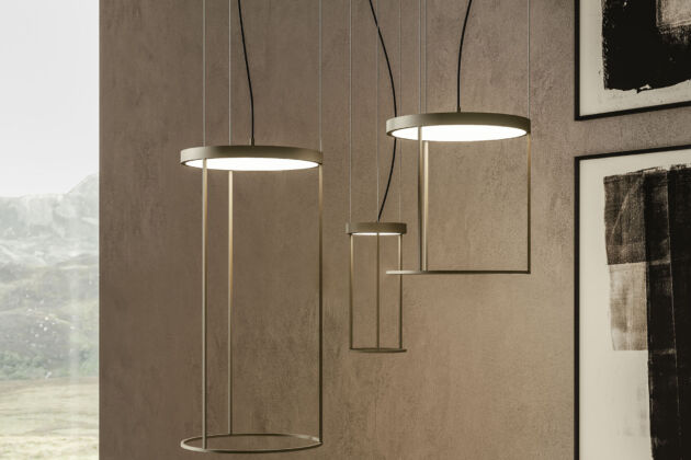 Lampada Led a sospensione caratterizzata da una piastra circolare luminosa orientabile ed un design raffinato ed essenziale. Il disco luminoso emette una luce calda da entrambi i lati e può ruotare di 180° permettendo composizioni ed effetti luminosi sempre nuovi.