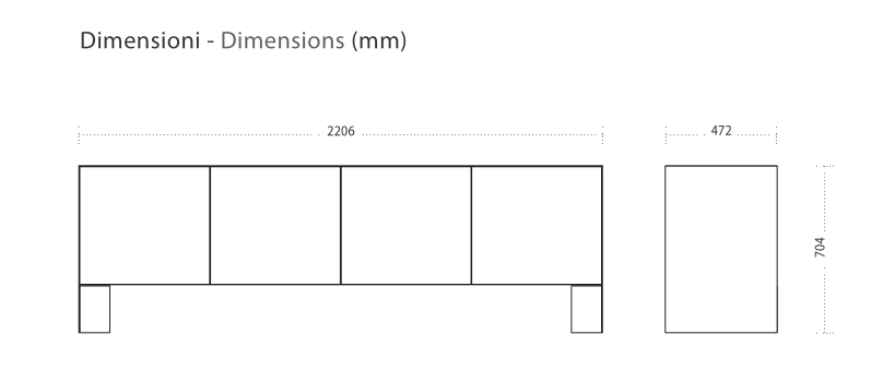 Sideboard with metal structure and doors available in wood, ceramics or metal. Black lacquered inner compartment with glass shelves.