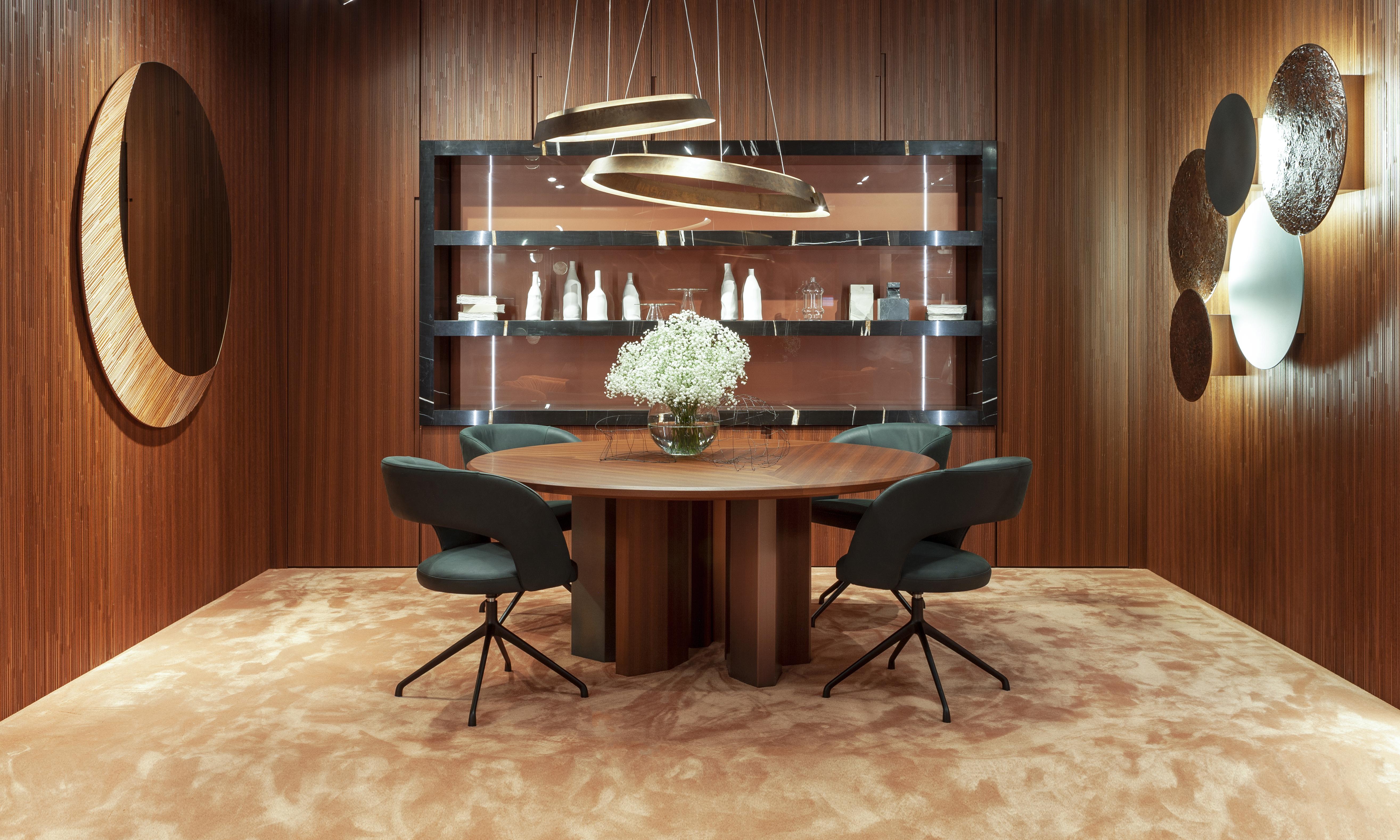 The focal point of Imperfetto's design lies in the imposing prismatic base, composed of two or more elements and available in one or more finishes and in different compositions. An extremely modern and decorative detail referring, in its simplicity, to nature, minerals and rock formations.
