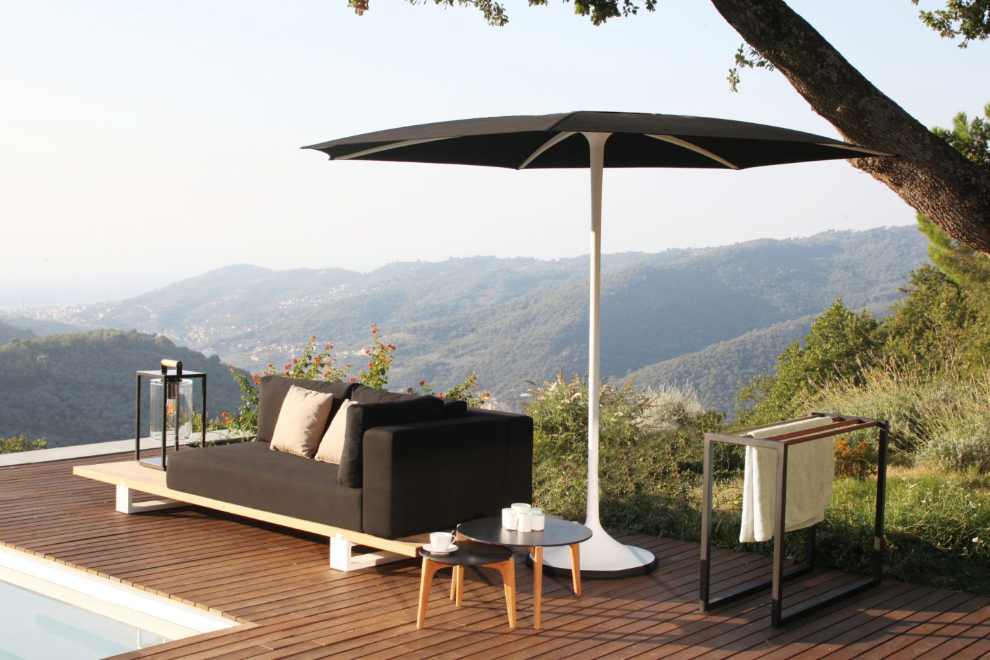 While sheltering from the sun under a palm tree, Kris Van Puyvelde looked up, and saw the leaves slowly wave in the wind. It made him wonder why a garden umbrella couldn’t look this nice. That moment the idea to create a strutless umbrella with the looks of a palm tree was born.