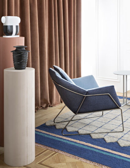New York, a collection which proudly bears the name of the Big Apple. Two souls, uptown and downtown, enclosed in a single piece whose fully changeable covers reveal its innate versatility. The unusual and polyhedral ergonomics of the New York armchair encourages a personal use of the covers and the two colours, allowing different colour solutions from a single choice. The frame in iron rod comes in many colour and coating finishes. Fully removable covers.