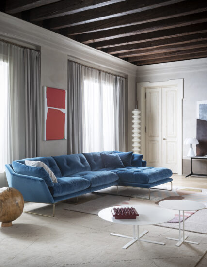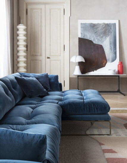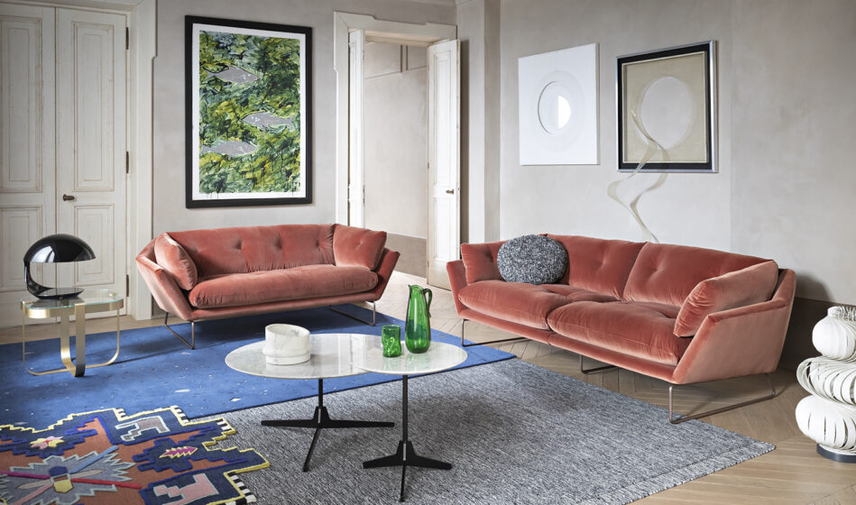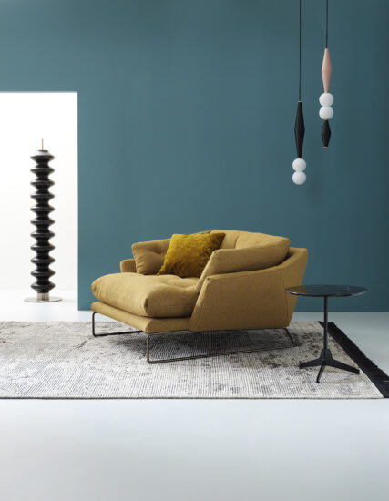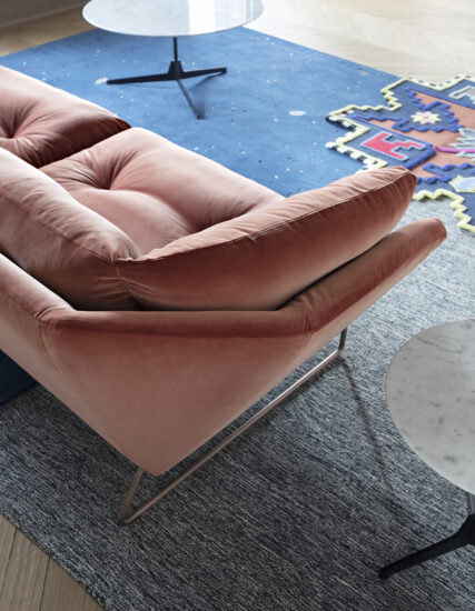 The new New York collection designs by Sergio Bicego still retain a contemporary soul and timeless spirit. The quilted cushions hint at a retro elegance and a nostalgic atmosphere yet the whole design is futuristic. At the same time the metropolitan allure is heightened by the hexagonal shape of the frame resting on slim steel rod feet. New York suite is soft and welcoming also in the smaller versions such as the maxi lounge chair and the 155 cm sofa which seats two people comfortably and is particularly interesting for contract projects.