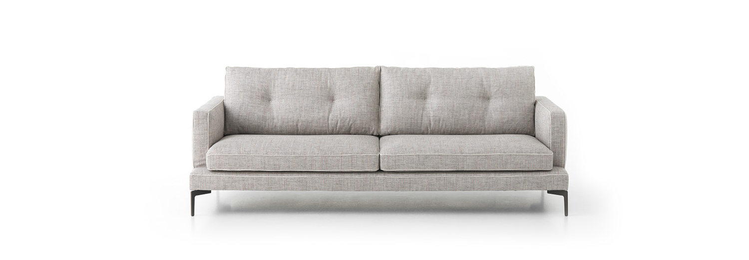 The Essentiel sofa presents itself with a clear purpose. A design without excess and friendly ergonomics, it represents a mix of Italian elegance and northern traits, merging harmonious elements in the space-time map of design. Attention to detail, a feature that has always characterized Saba collections, can be noticed in the quilting of backrest cushions and the grosgrain cord trim. With essential lines that can be customized, the 67cm and 77cm backrest pillows are also available in the higher version with a support roller. This sofa is available in the following sizes: 154 – 190 – 220 – 250 cm. With its sophisticated allure, our Essentiel armchair completes this timeless collection.