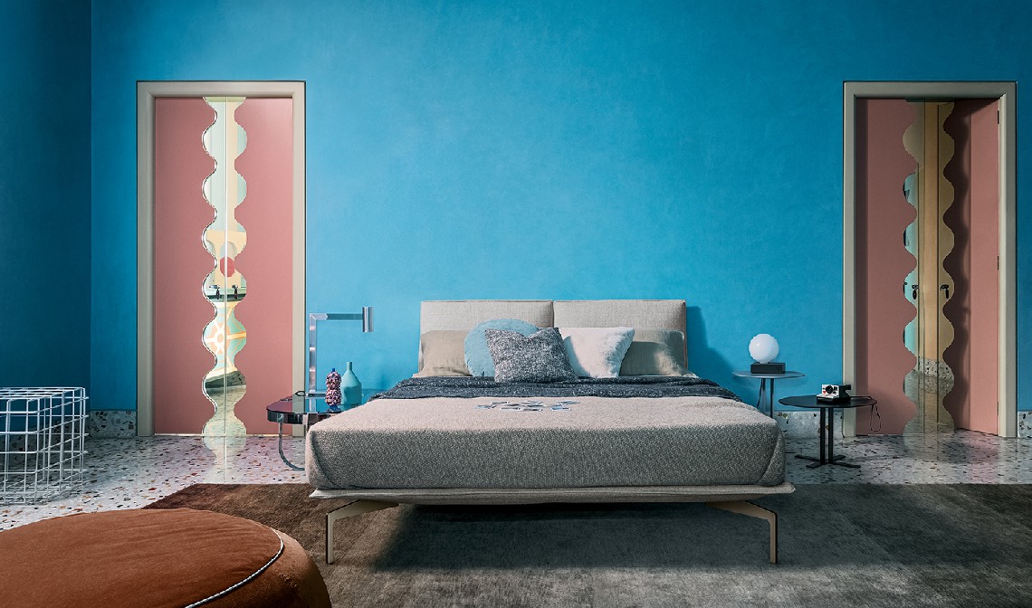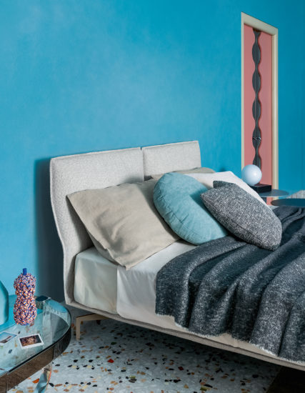 The Avant-Après bed has a sober allure and an elegant presence. Grounded yet lightweight, it transforms into extremely interesting configurations thanks to the particular headboards that can be positioned along the bases’s perimeter. The bed-frame, available for upholstery in fabric or leather, rests neatly on a metal base finished with painted metal feet.