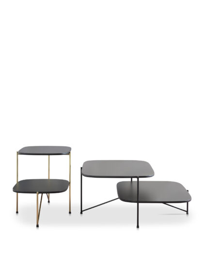used in building construction that, in this particular context, is interpreted as a joint onto which the feet are attached perpendicularly. This style detail is reminiscent of 1950’s furniture design. The base of the table is painted finished metallic wire drawn and the top in marble.