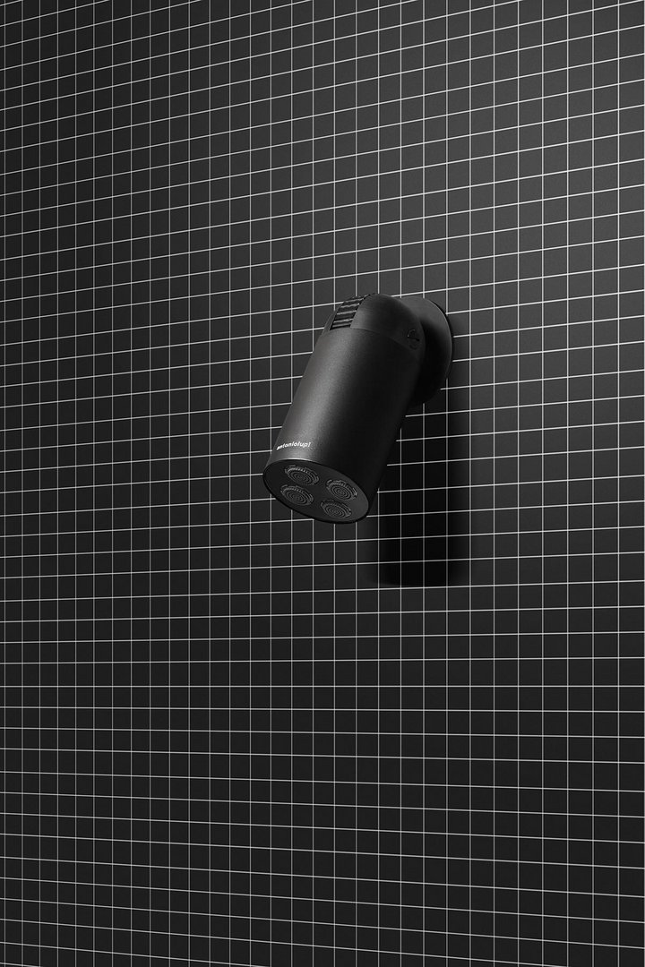 Un cilindro perfetto, compatto, essenziale, preciso, una forma che rimanda immediatamente ad altre funzioni, un’immagine che è la perfetta sintesi di tecnologia e design: Azimut è il soffione a soffitto e a parete in acciaio inox e corpo nero opaco, che ha nello snodo speciale il cuore del progetto. Un dettaglio tecnico che diventa estetico, un particolare che fa la differenza, un concept che mette la funzionalità evoluta al primo posto. Lo snodo permette infatti al soffione di ruotare e quindi orientare il getto d’acqua per più di 180° rispetto a un asse. Una caratteristica che ne moltiplica le possibilità d’utilizzo garantendo una maggiore flessibilità di installazione.