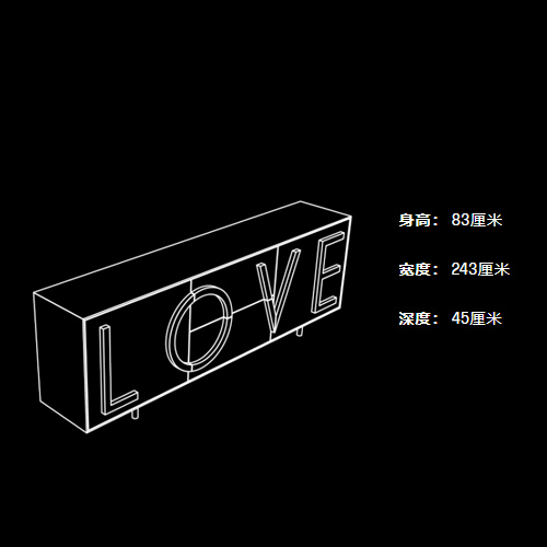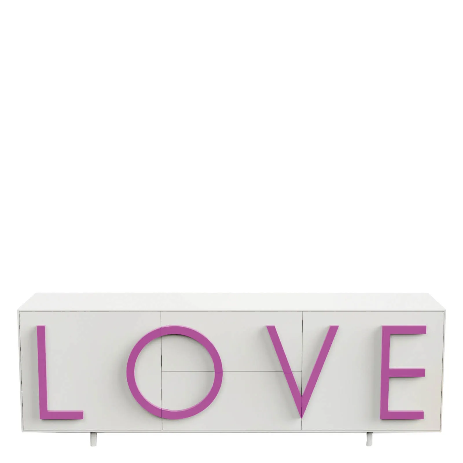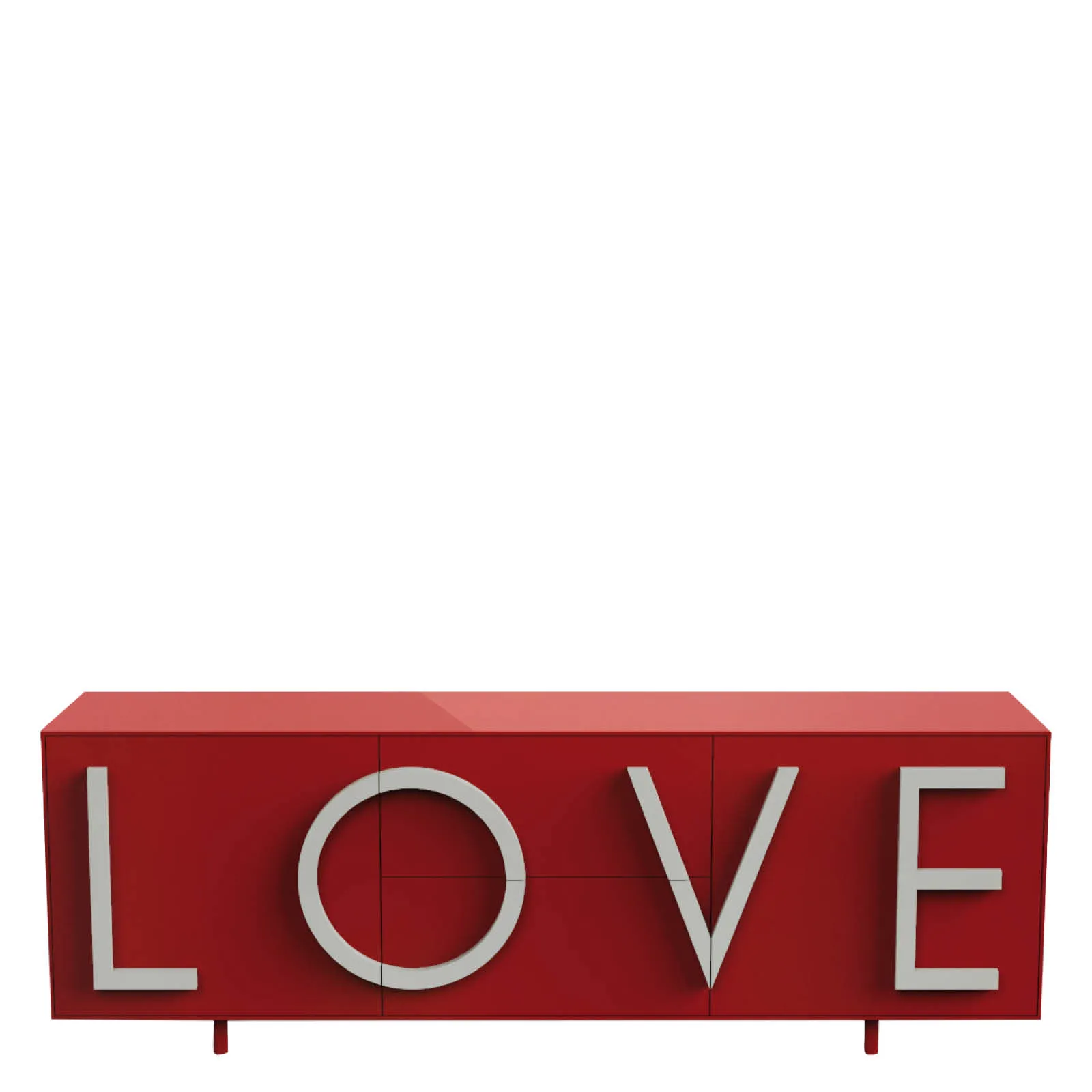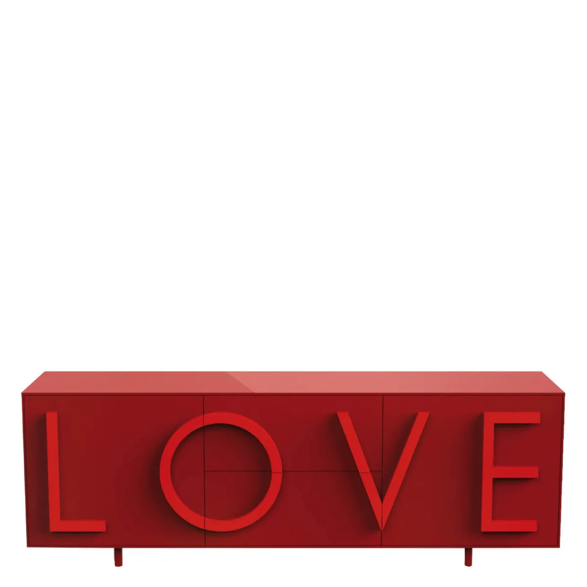 Con la sua forma caratterizzante e tutta da scoprire, la madia LOVE (cabinet) costituisce un manifesto espressivo, un poster bidimensionale che parla d’amore. Dal connubio tra estetica e funzione, le linee diventano tridimensionali, il foglio si estrude diventando contenitore e le lettere escono dal foglio generando delle maniglie, elementi versatili e disponibili in vari colori. ?Amore è scegliersi a scatola chiusa, avvolti da un alone di mistero. Amore è un fedele custode di sogni condivisi, un contenitore di possibilità? Fabio Novembre