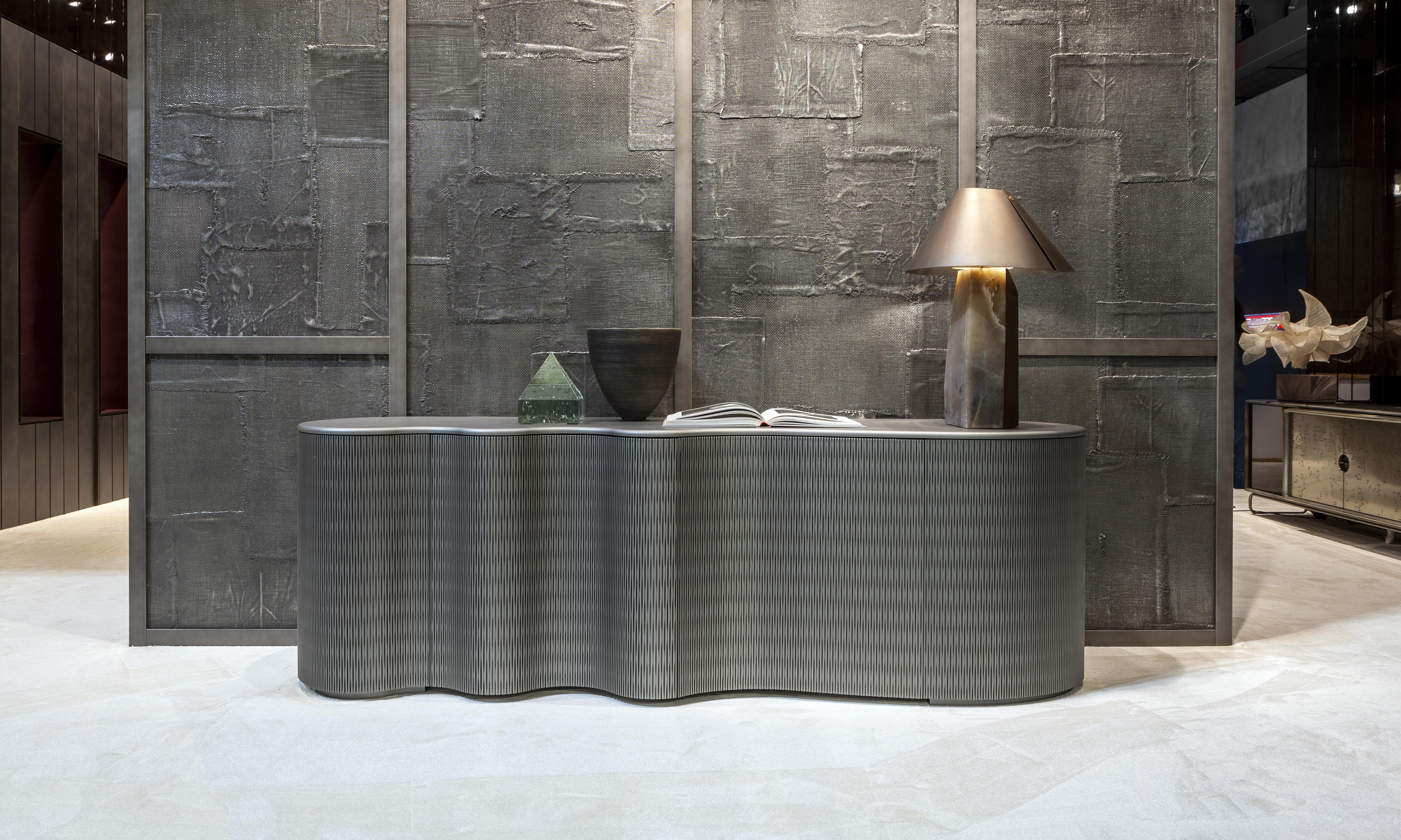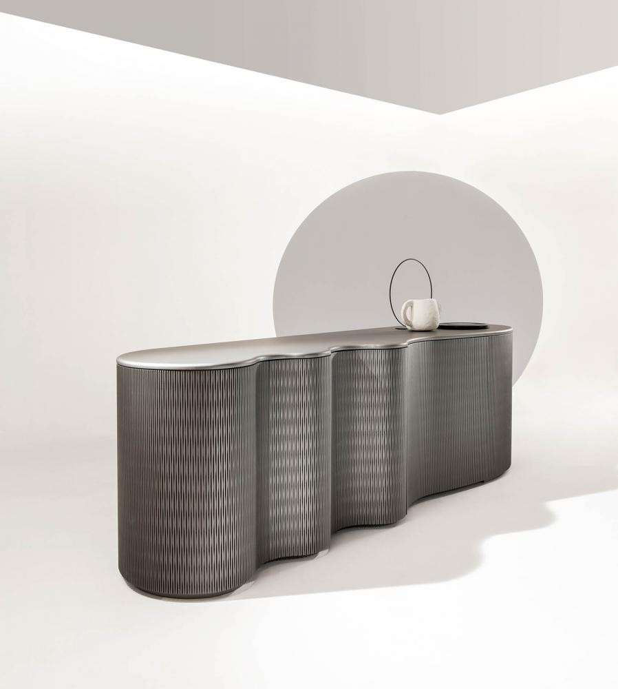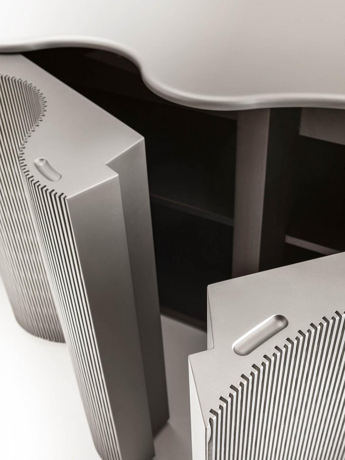 Part of the Infinity collection, this sideboard re-proposes the design of the console, reinterpreting its use and introducing the two hinged and curved doors.