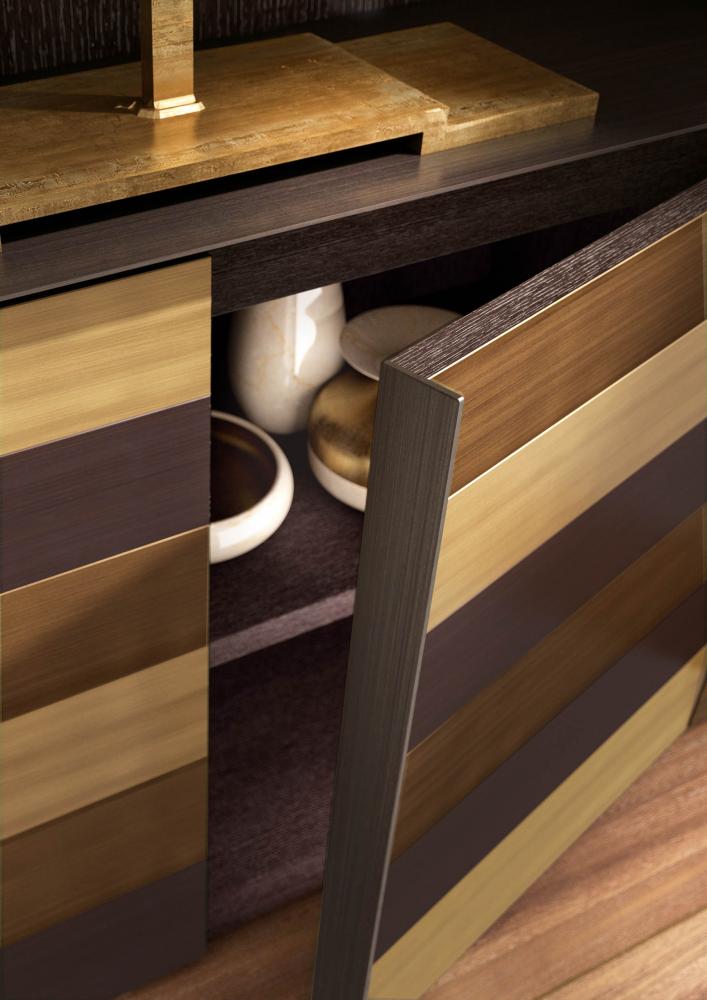 Wardrobes System in wood and metal with Stars decoration available in modules of different sizes, with Stars metal bands decoration available in all the metals of the collection and with horizontal and vertical decor.