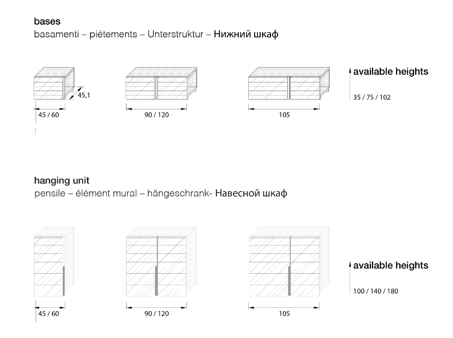 The Stars system has a design conceived to satisfy the most demanding customers, offering a unique luxury product made with noble metals such as brass or copper, and enhanced by the various accessory options and the integrated doors and wall panels, to create infinite compositions and allow complete customization.