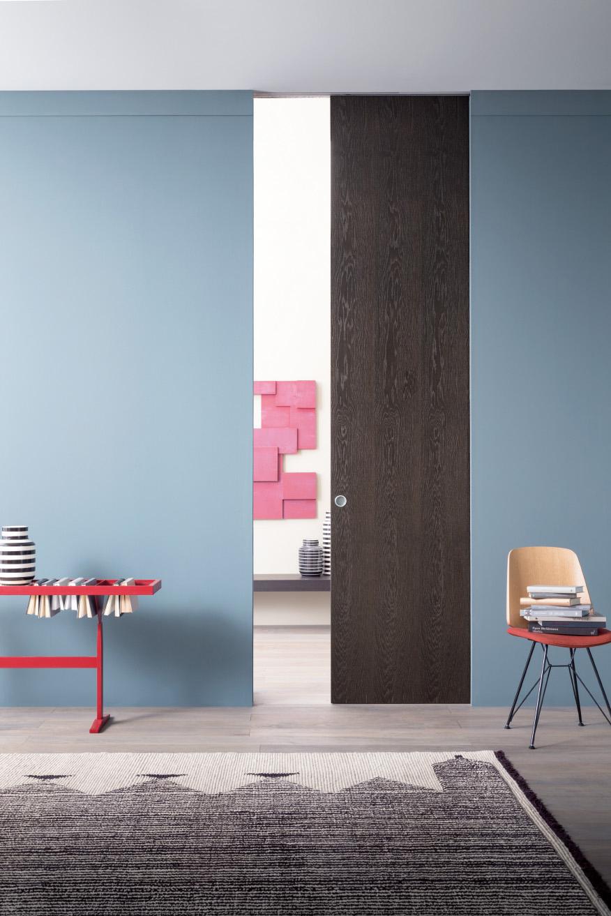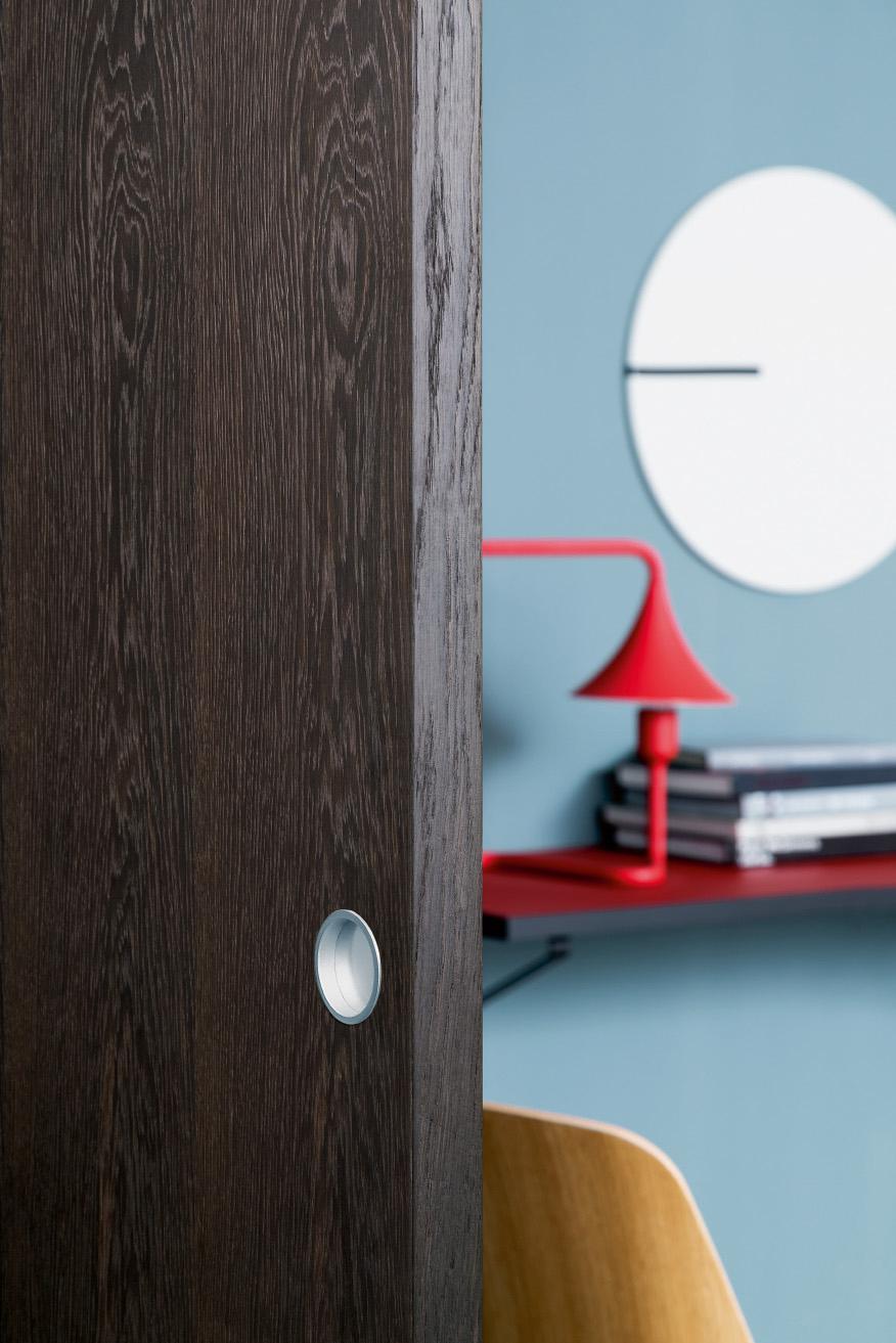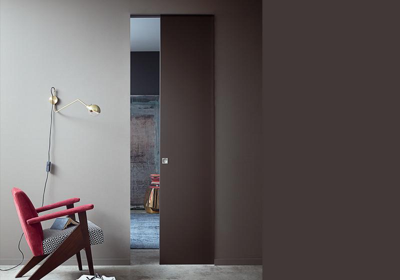 For a more fluid space, this pocket door connects environments without the presence of any frame and the dimensions of the leaf.