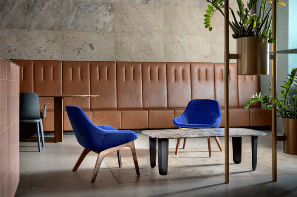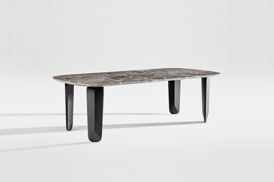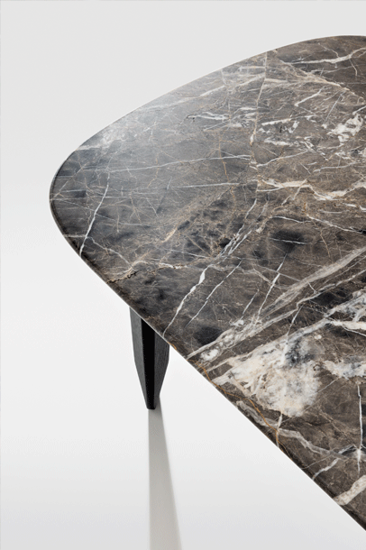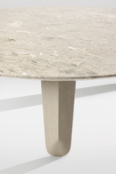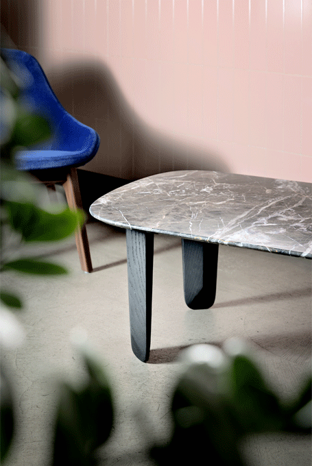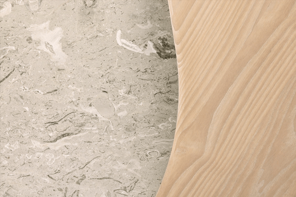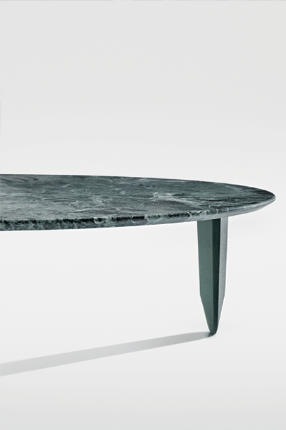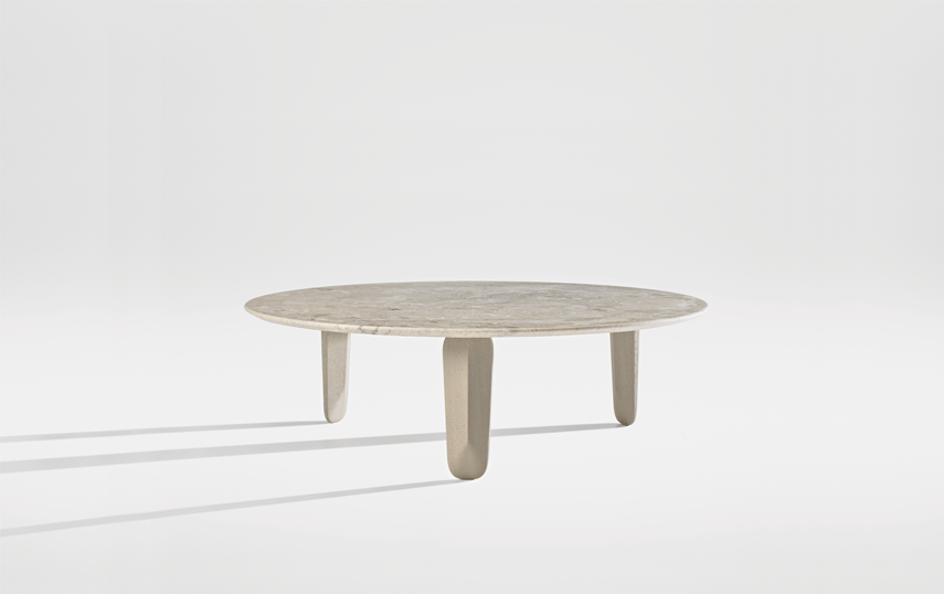 KUYU – new with marble table top. Marble is a new addition to the ZEITRAUM material pool. The brushed surface preserves the original, velvety texture of marble. The natural beauty of the stone is highlighted in the large KUYU lounge tables.