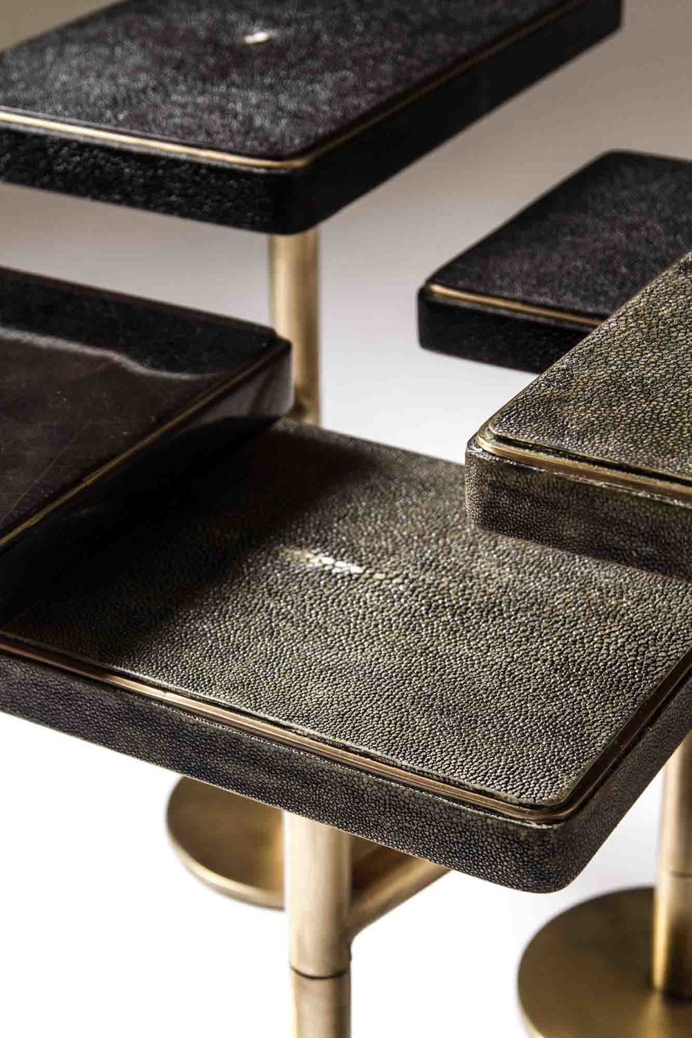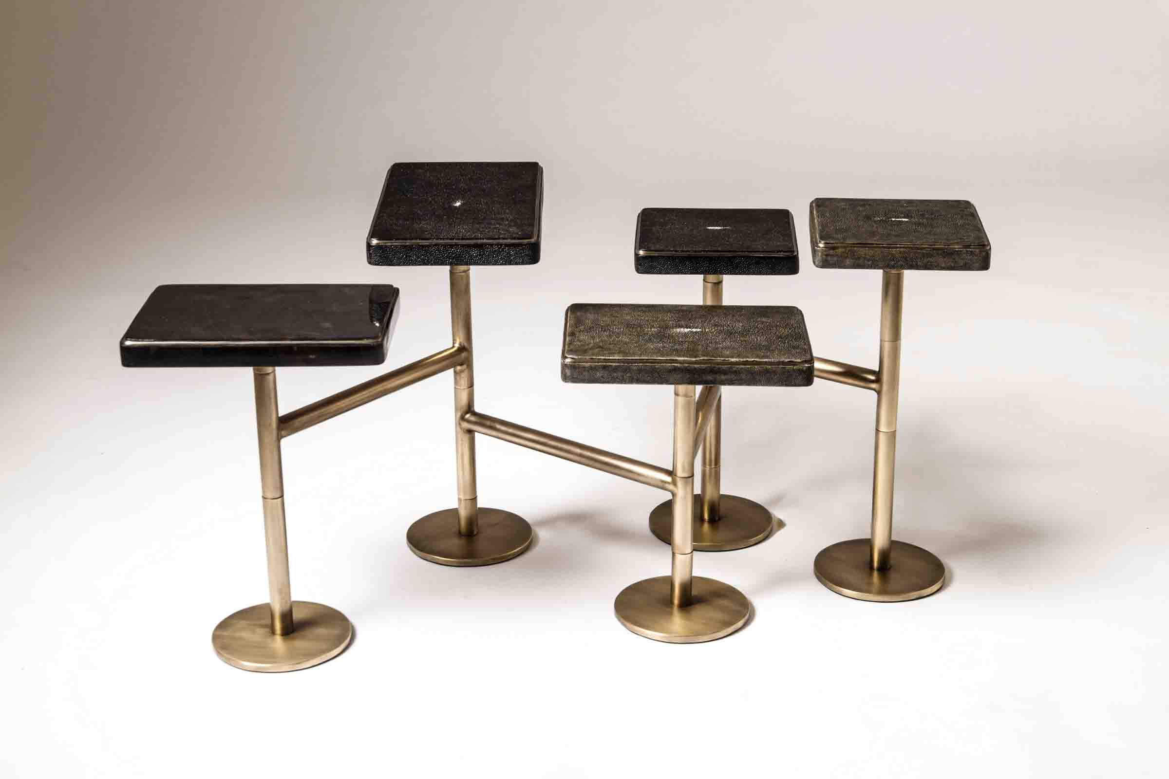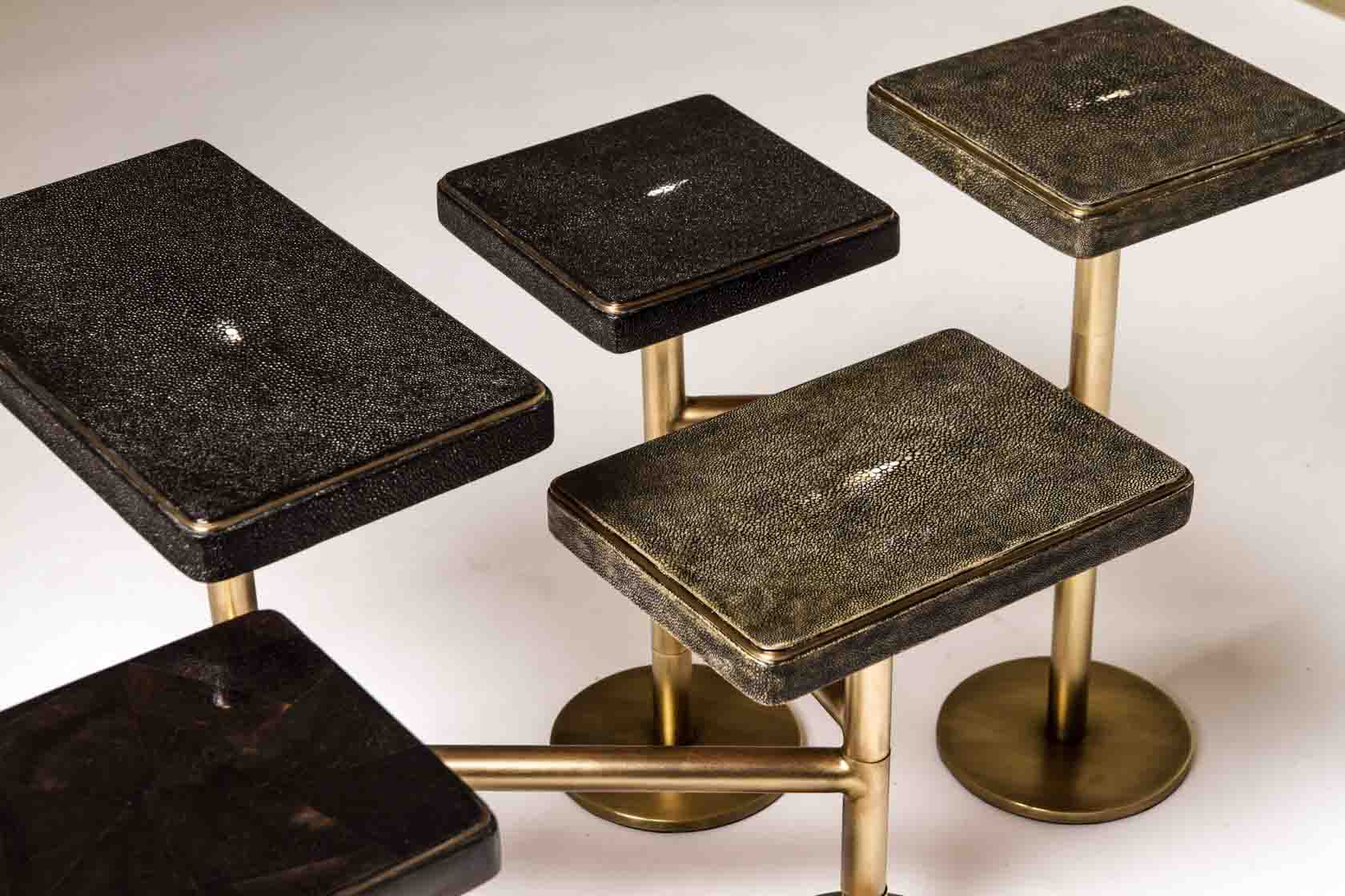 The 5-Top Rotating Coffee Table is completely mobile, allowing one to adjust the piece to their preference from elongated to clustered.