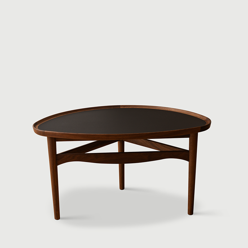 Materials: Frame and edges: Solid oak or walnut Tabletop in veneer, white nano laminate or black linoleum.