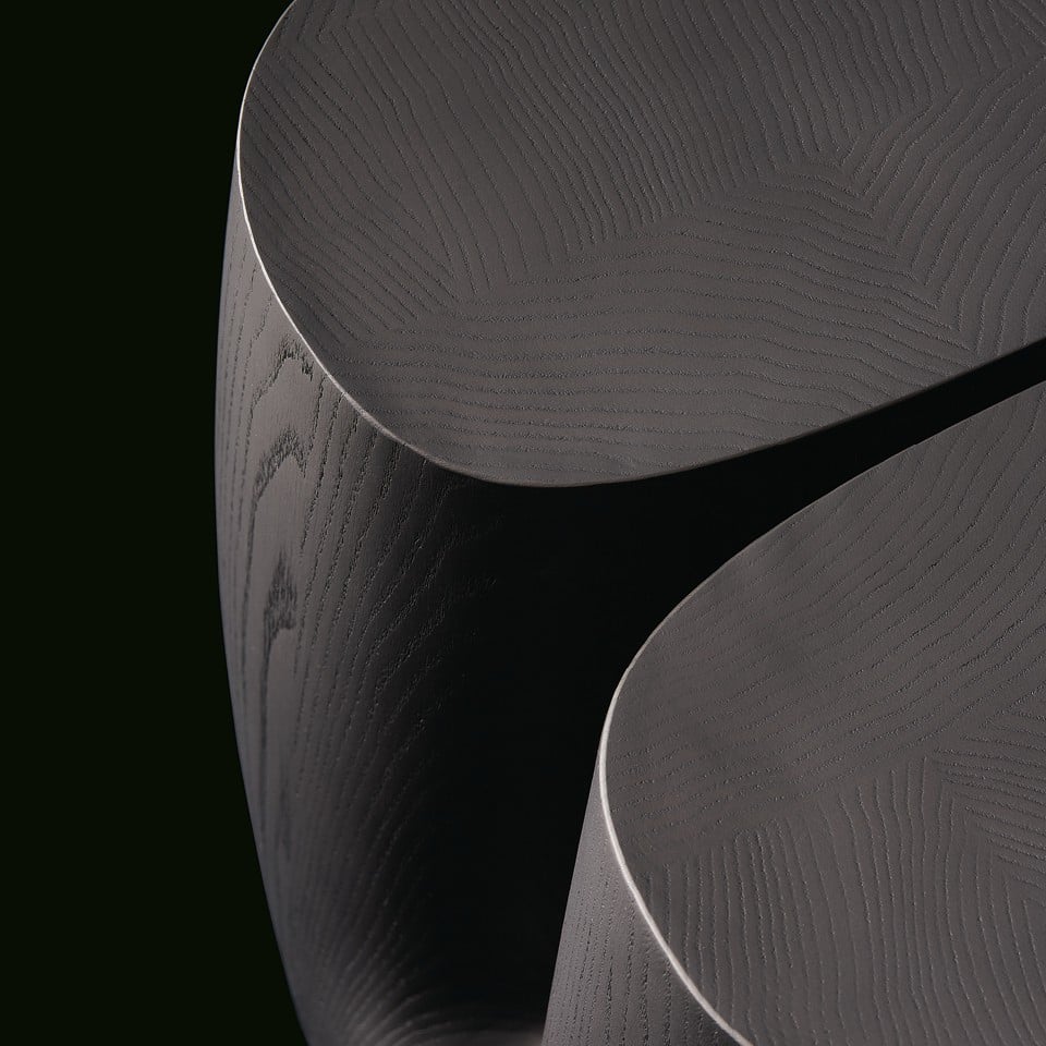 The Ube stool is an element of rupture, a work of art serving the functionality of the living area. Inspired by the seed of the coco de mer, a tropical fruit with an evocative and sensual shape, the stool has a distinctive concave shape, forming a comfortable cradle to sit on. Radical also in its realisation, it is made from a block of solid wood, in the classic olmo nero finish.