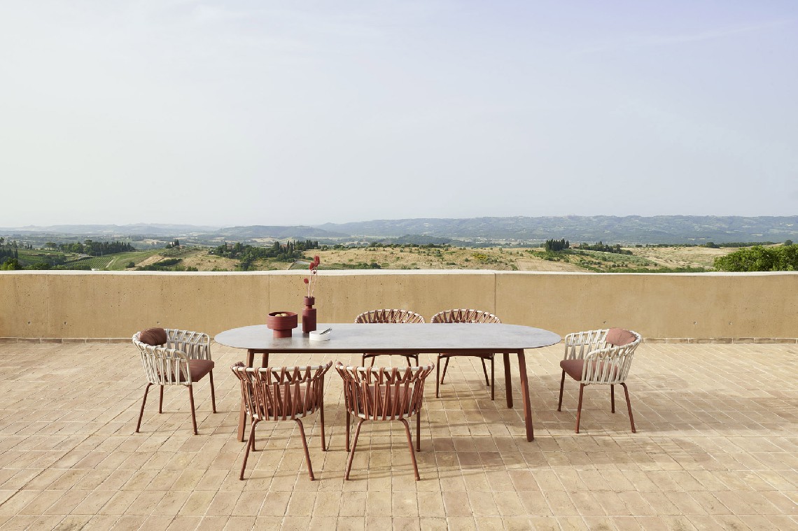 The Emma table is perfect for creating an outdoor dining area, both in the home garden and in the outdoor area of ??a restaurant or club.