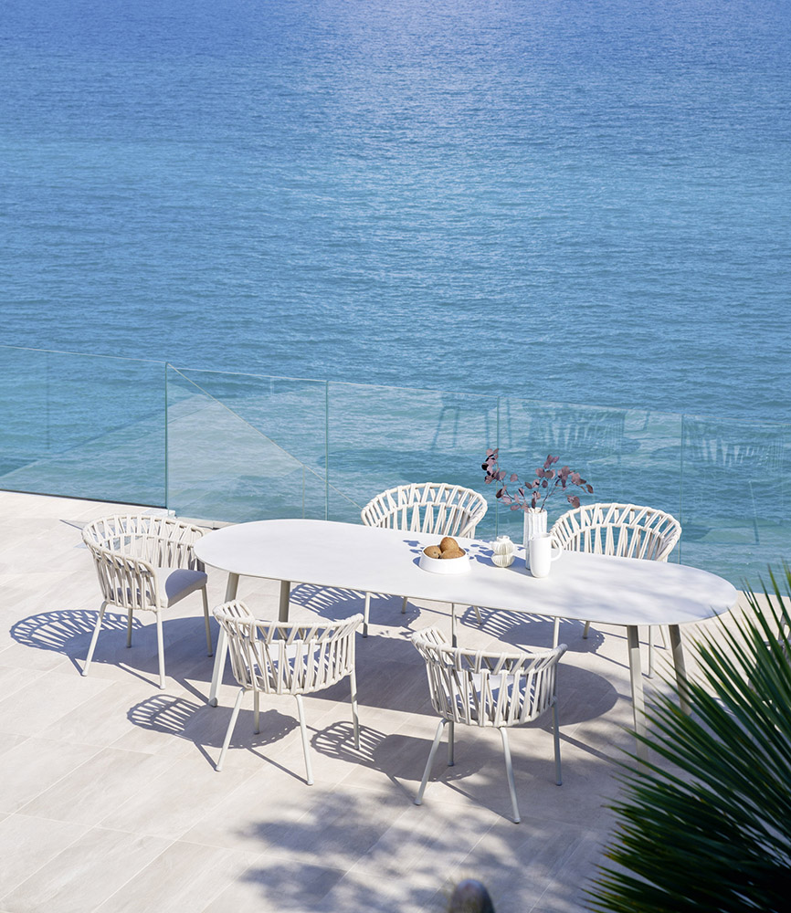 Residential and contract outdoor furniture. Suitable for marine areas.