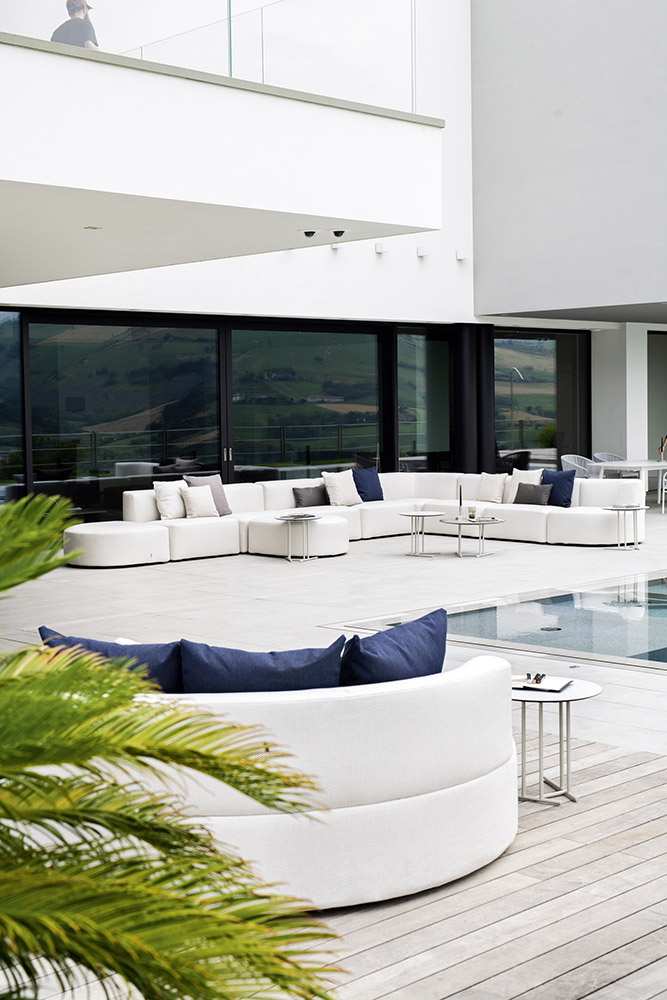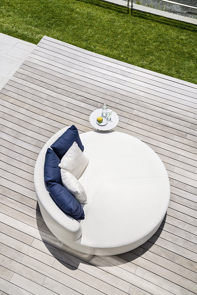 Curved lines and rounded profiles give shape to this versatile piece of furniture, where you can relax at any time of the day, sitting or lying down, alone or in good company.