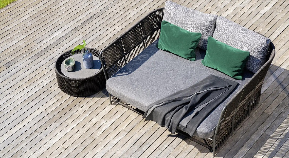 The compact daybed Tibidabo is always the protagonist of the outdoor space and is chosen by architects and designers for its ability to create an intimate and relaxing space, both in residential and contract environments.
