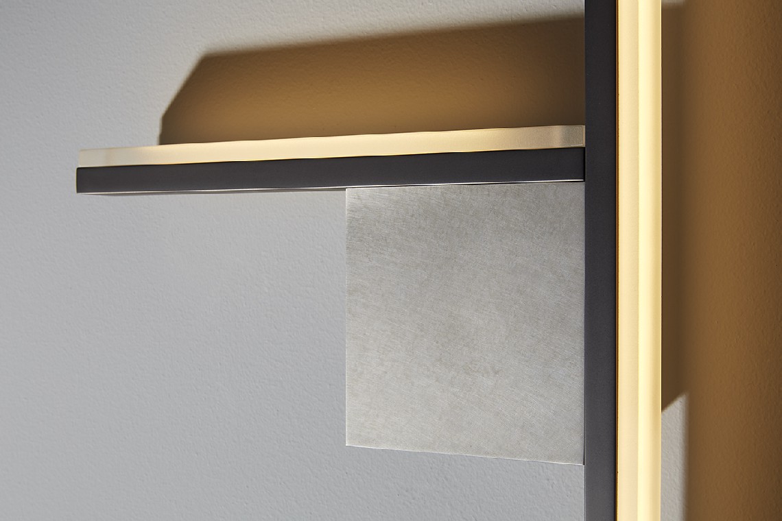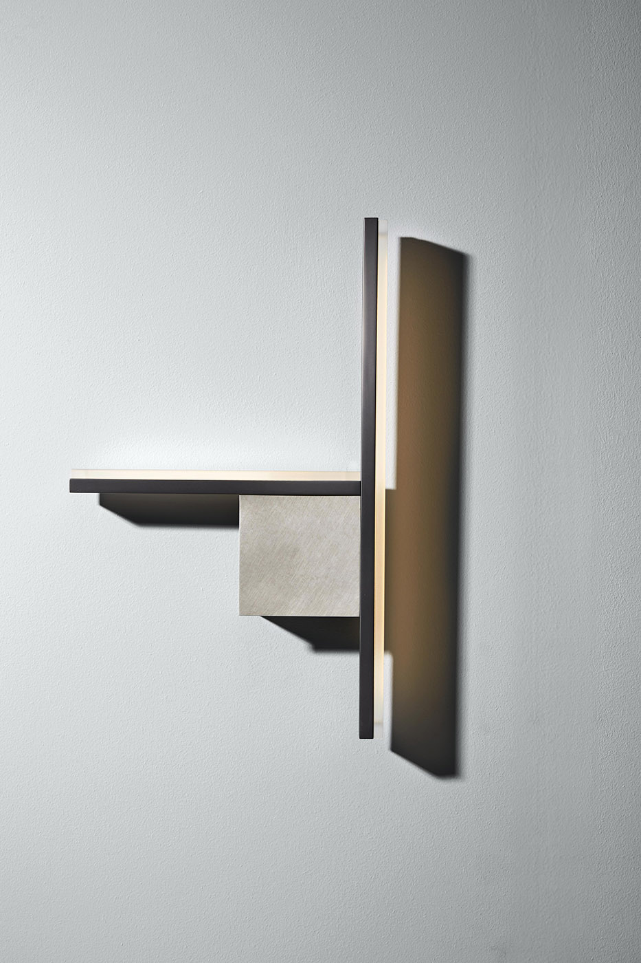 Delabré brass or matte black nickel structure. Pewter or antique copper plate. Satin glass diffusers th. 10 mm.