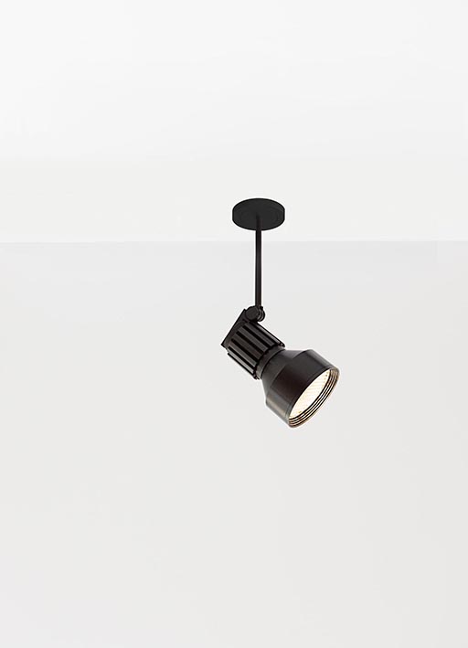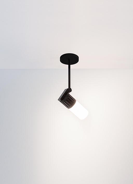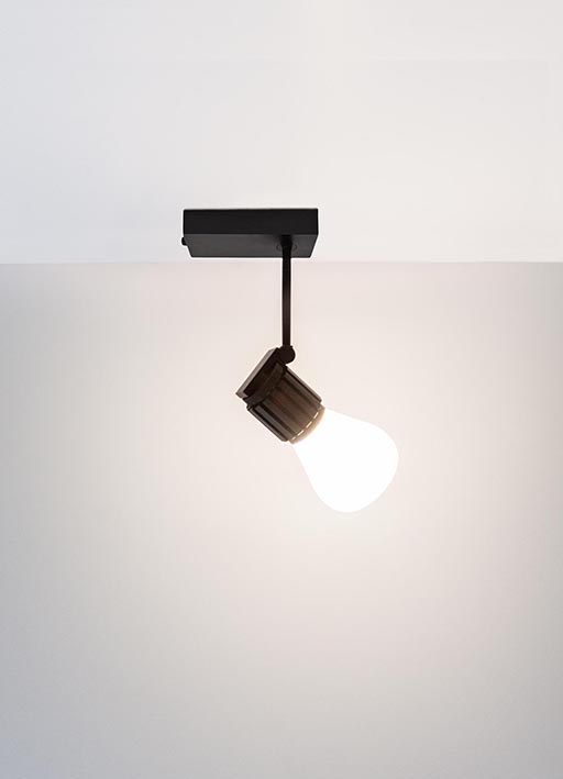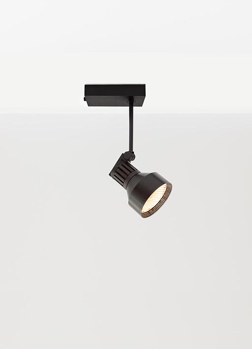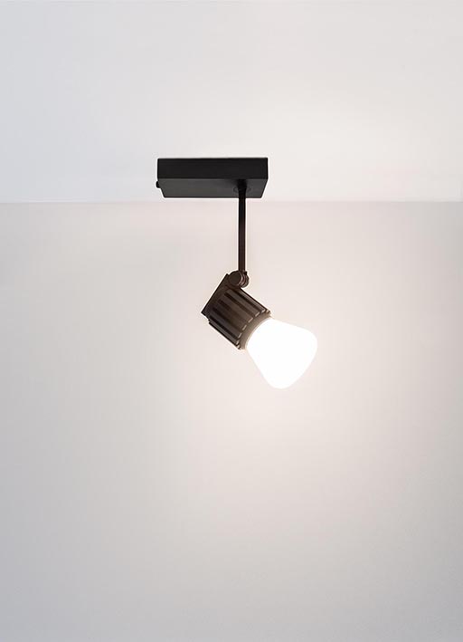 damp location rated wall or ceiling light fitting for indoor use made of oxidised aluminium.