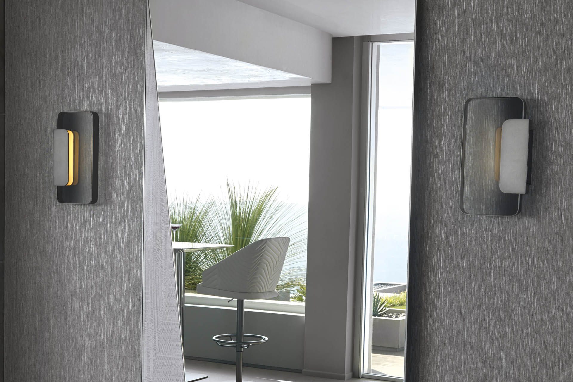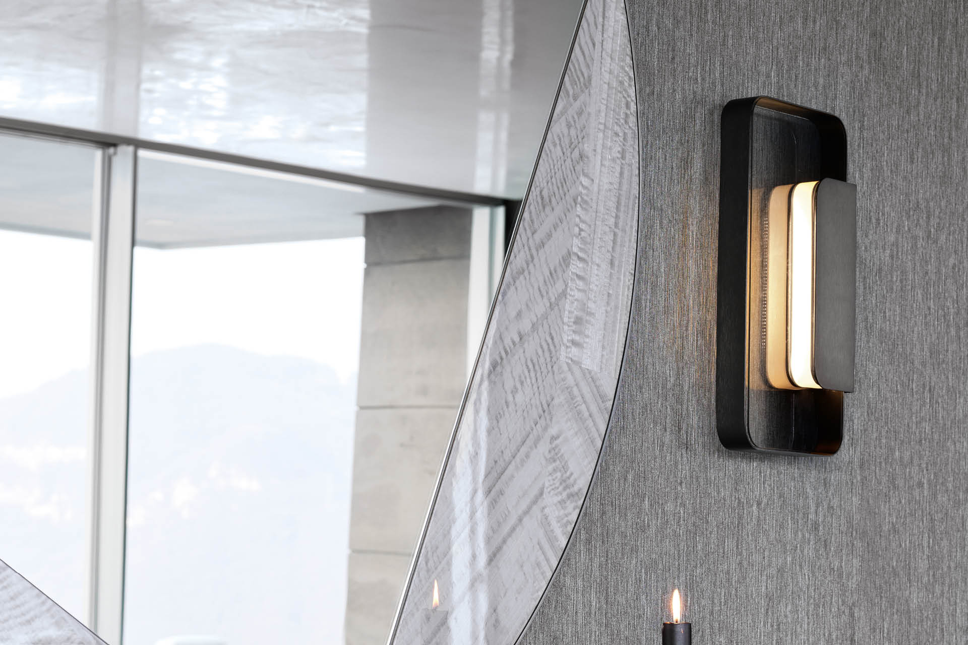 Wall light in combination of Venetian "Murano" graded smoked blown glass and satin grey nickel stainless steel structure.