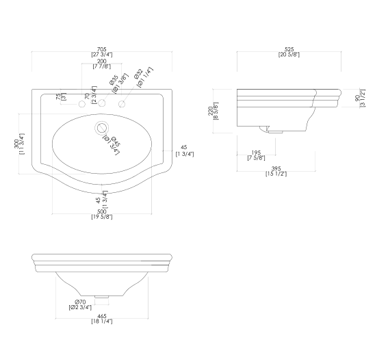 Classic taste and fine English porcelain for a washbasin with pedestal that perfectly combines the love for tradition with maximum practicality. Being characterized by a great formal sobriety and a surprising harmony of proportions, it fits naturally in any design context. It is available in the versions with 1 and 3 hole.
