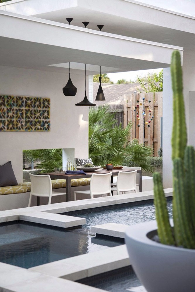 在樓梯或家具下面裝上LED燈光條會(huì)讓你的后院更加明亮且不占據(jù)空間,在樓梯這種地方,它讓每一節(jié)都暴露在燈光下。這是一個(gè)超級現(xiàn)代化的設(shè)計(jì),它把戶外區(qū)域變成了一個(gè)可以隨時(shí)欣賞的地方。