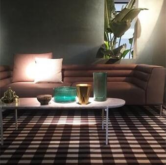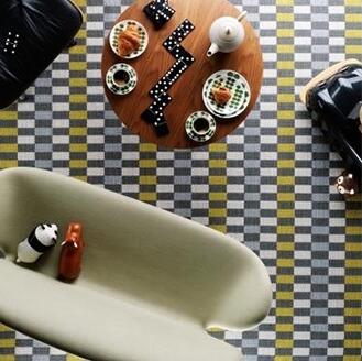 格子系的地毯,不同的顏色拼接,或在純色地攤上用不同顏色的線隔開,