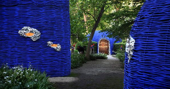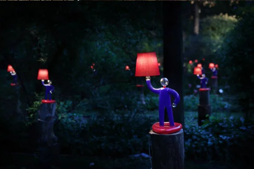 在2012年米蘭家具展上,Navone攜手意大利傳統玻璃制品頂尖工藝的Barovier&Toso展出了作品“Secret Garden”。她用1萬3千條榛樹枝編織成巨型藍色巢穴,將吊燈藏在里面。這些巢穴造型沖擊力強,錯落在空中美麗又神秘,激發人們的興趣和好奇心。