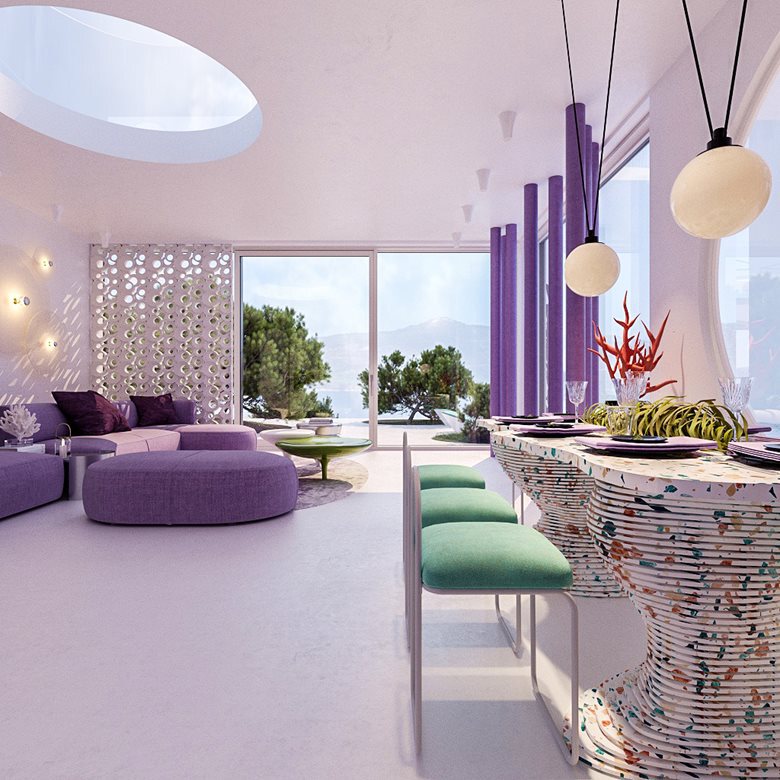 通過顏色飽和度來進行視覺層次渲染的紫色空間,總是充滿了誘惑力。