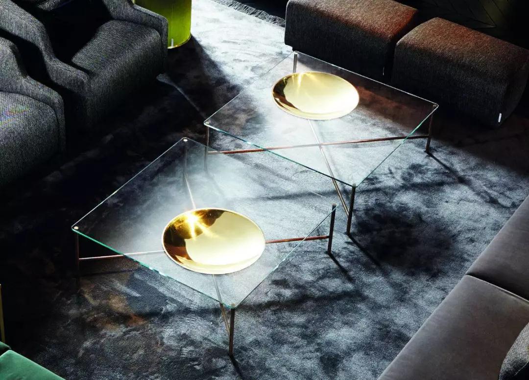 Golden Moon咖啡桌是一眼看到就驚艷的設計,將亮面的黃銅盤子鑲嵌在玻璃平面上,像一個金色的月亮倒影在水中,營造出一種文藝又風雅的家具美學。