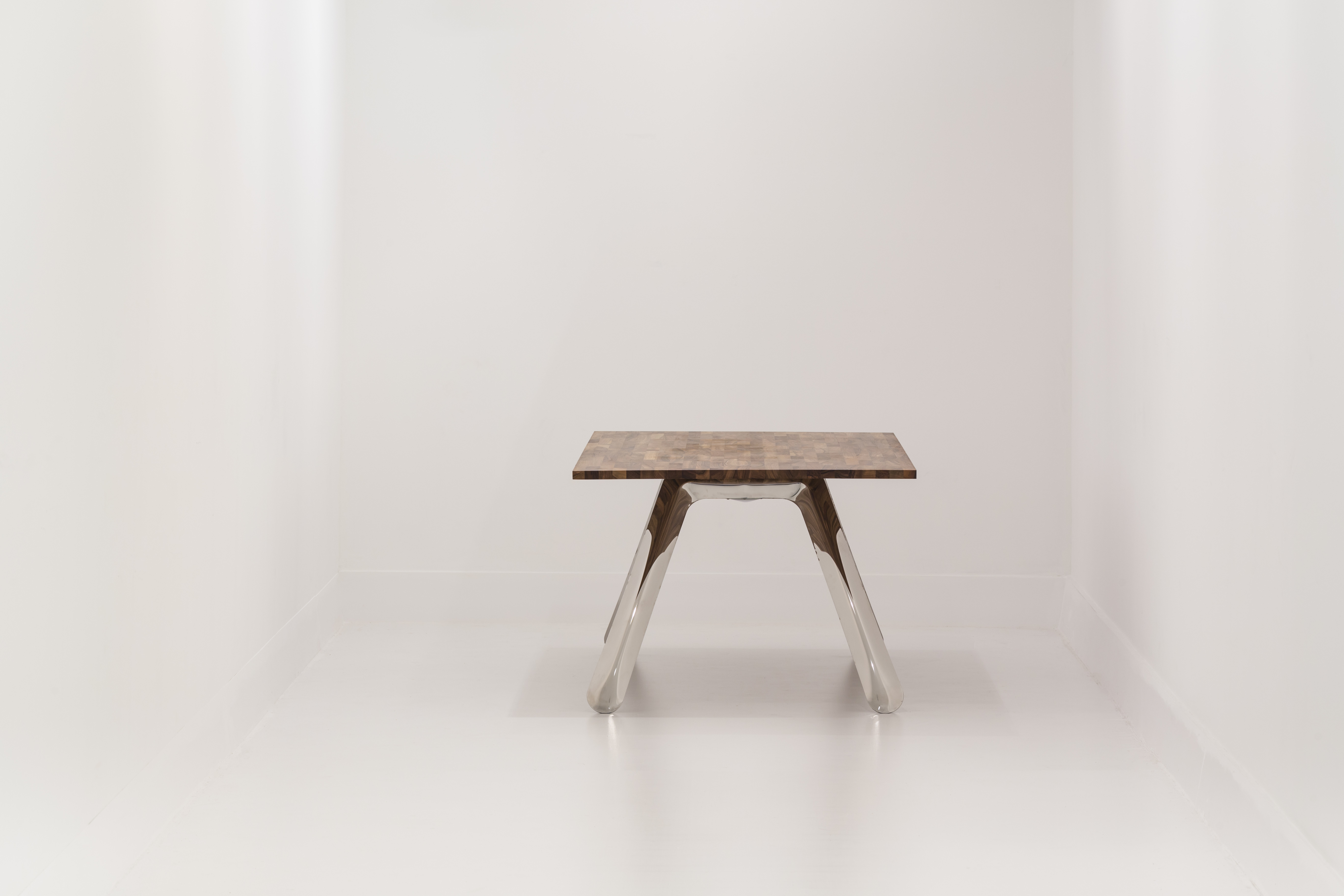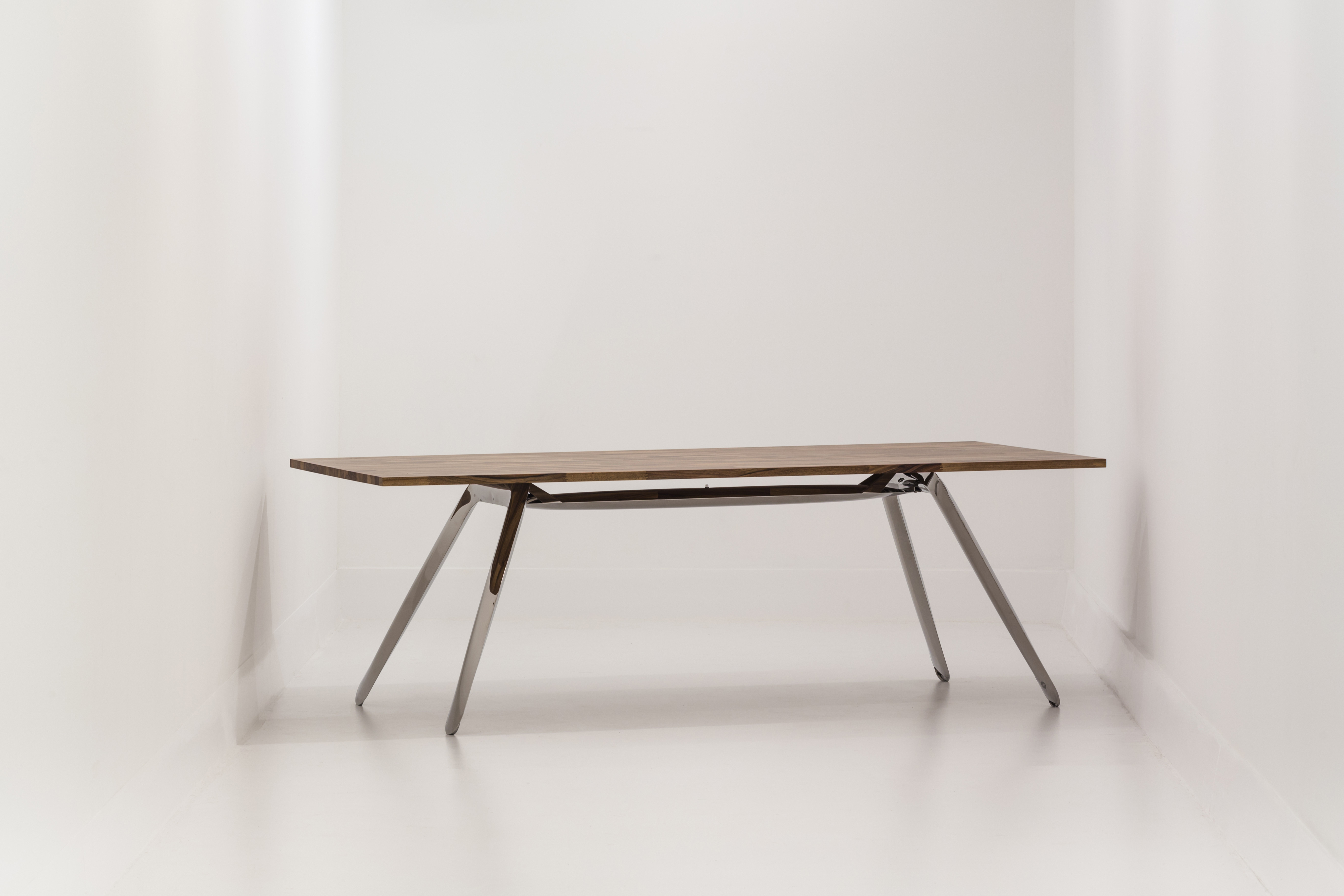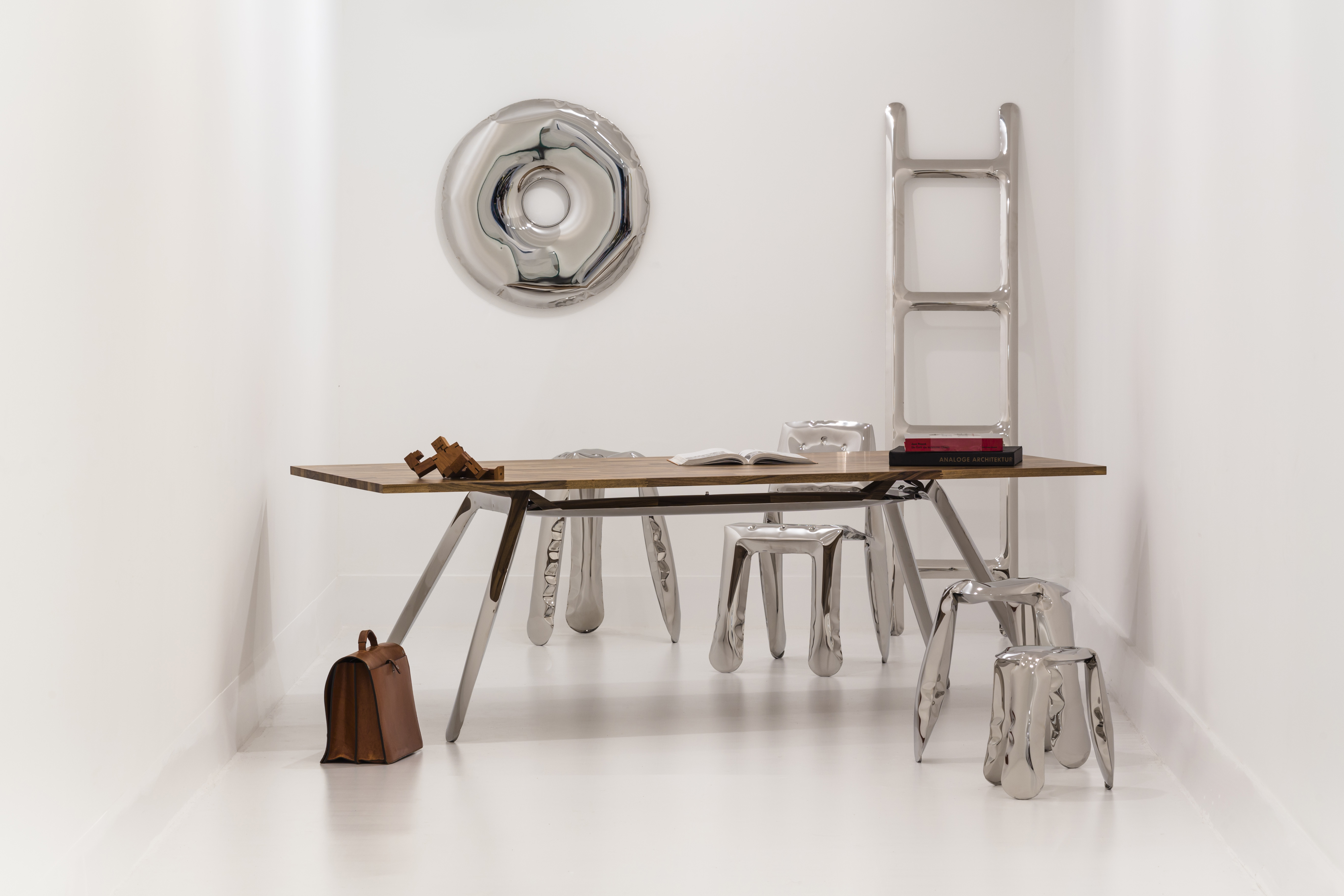 NOGI is an aesthetic form expressing minimalism. A unique construction manufactured in FiDU technology that comes in different shapes, sizes and metals. NOGI is the inspiring base for limitless experiments with tabletops that can be adapted to them.