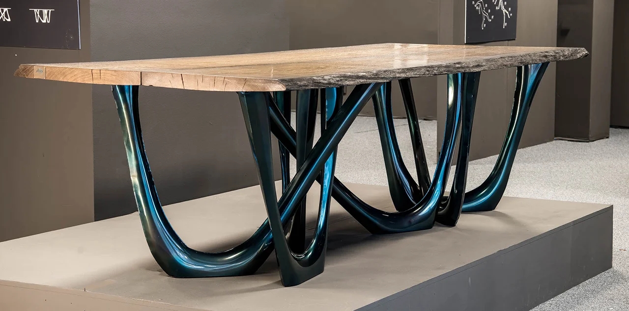 We use parametric design software to generate G-Table form. Modifying a few variables lets us create a miniature model as well as a huge pavilion. Delicate structure of table legs may become stocky and dominating. All those factors cause G-Table to be not only an effect of the process, but also a process itself. G-Table’s base consists of parabolic forms. Made with FiDU technology, it reminds of vines or tree roots. Nature symbolizes a constant changeability and harmony that comes out of it. Diverse structure of G-Table refers to both natural forms and processes.